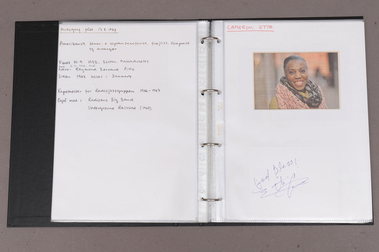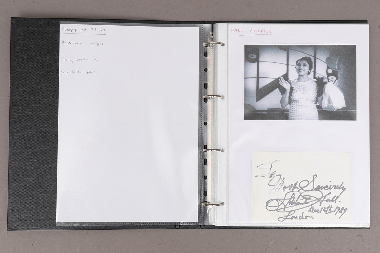 Binder mit Plastikhüllen. Maße Umschlag ca. 32x25 cm Fotos, Autogramme und teilweise Beschreibung der Autogrammvergabe.