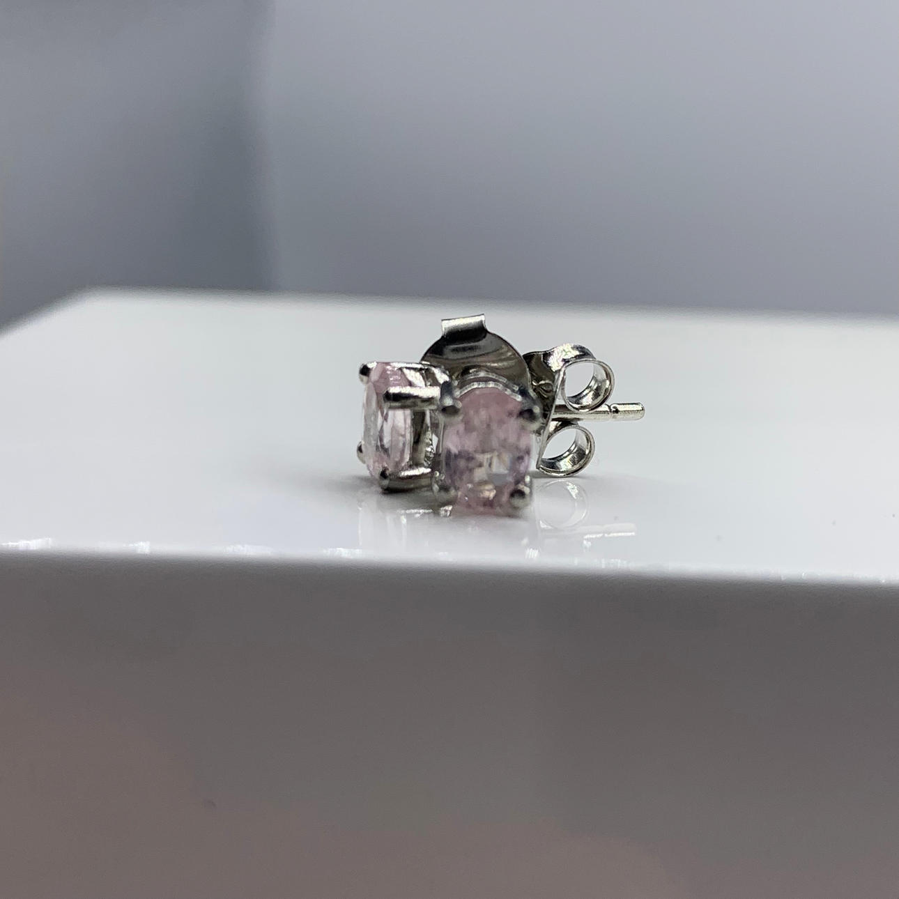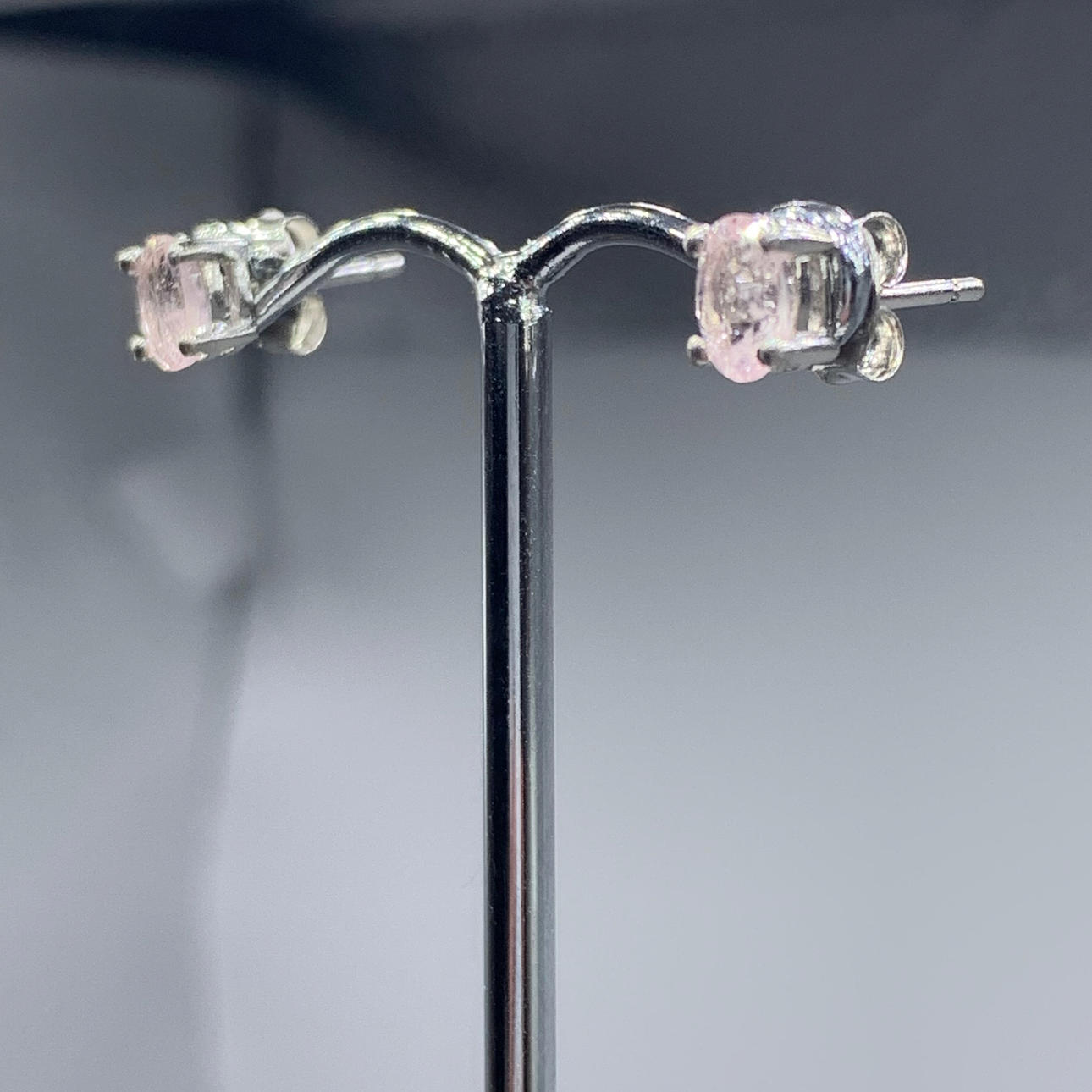 Ein Paar Morganit-Edelstein und Silbernieten.