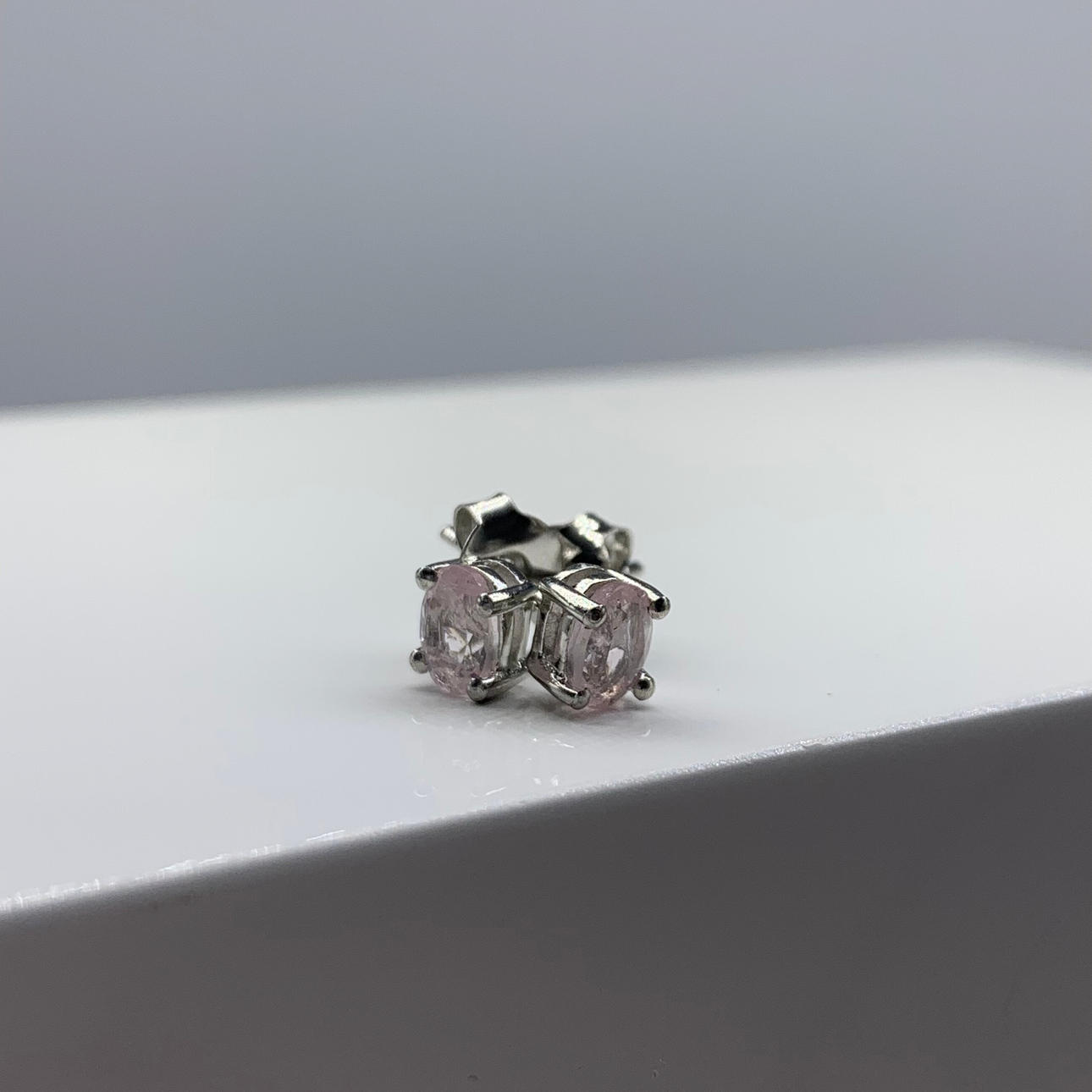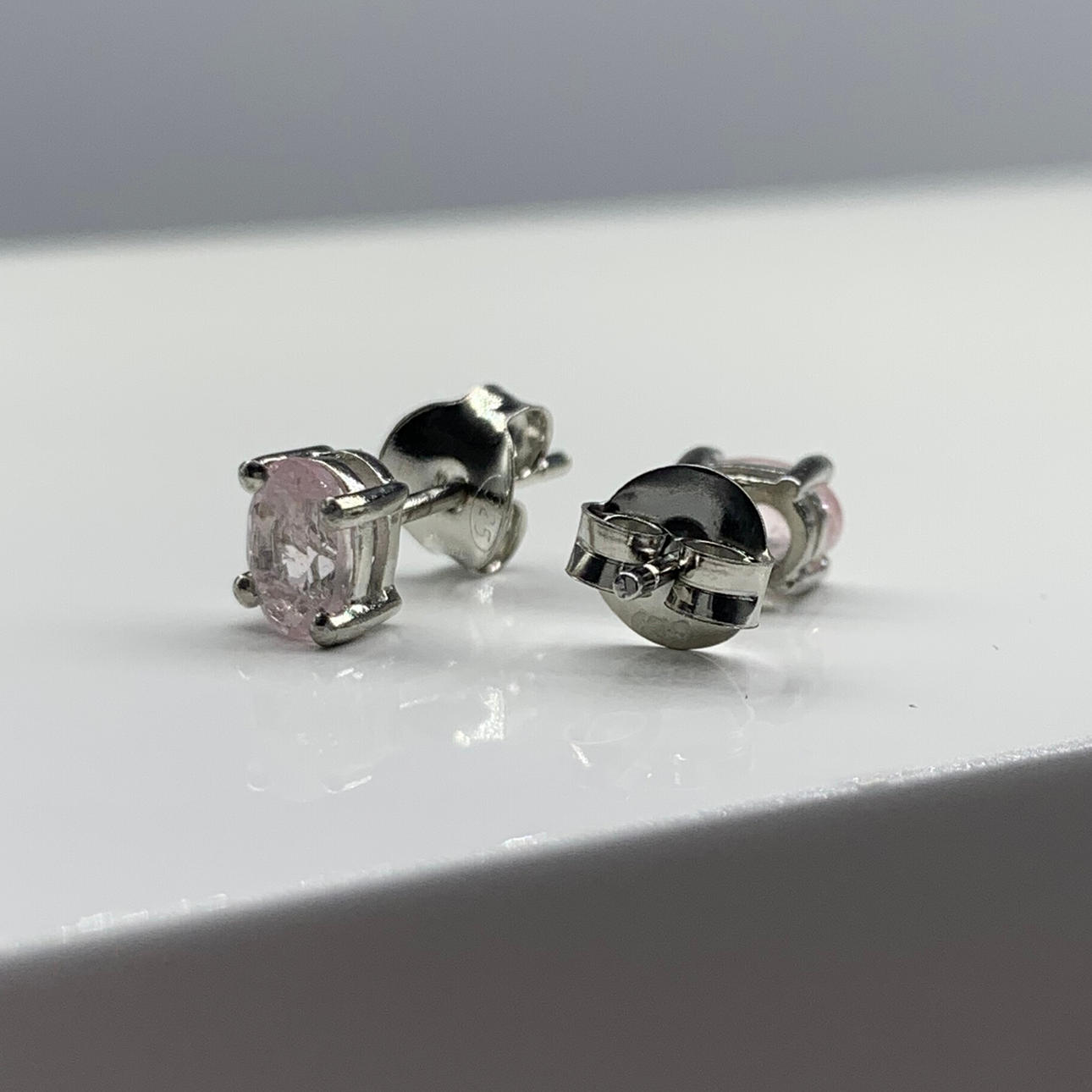 Jeder Ohrstecker ist besetzt mit einem Morganit im Ovalschliff von 7 x 5 mm, ca.