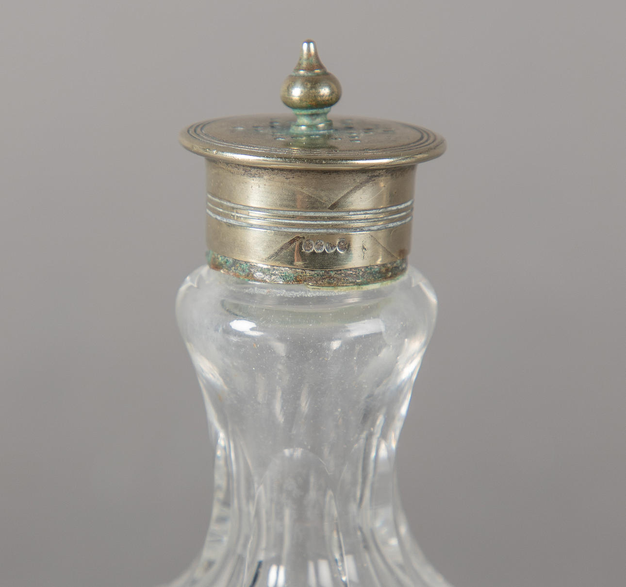 Gebrauchsspuren, Versilberung leicht berieben und blasig, Salz- und Pfefferbehälter an den Ecken bestoßen, Bereibungen, kleine Defekte.