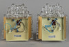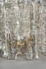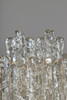 Metallgestelle mit angeschraubte Glaselementen in Eiszapfenoptik. Mit jeweils 3 Lampenfassungen. HxBxT: 23x21x14 cm.