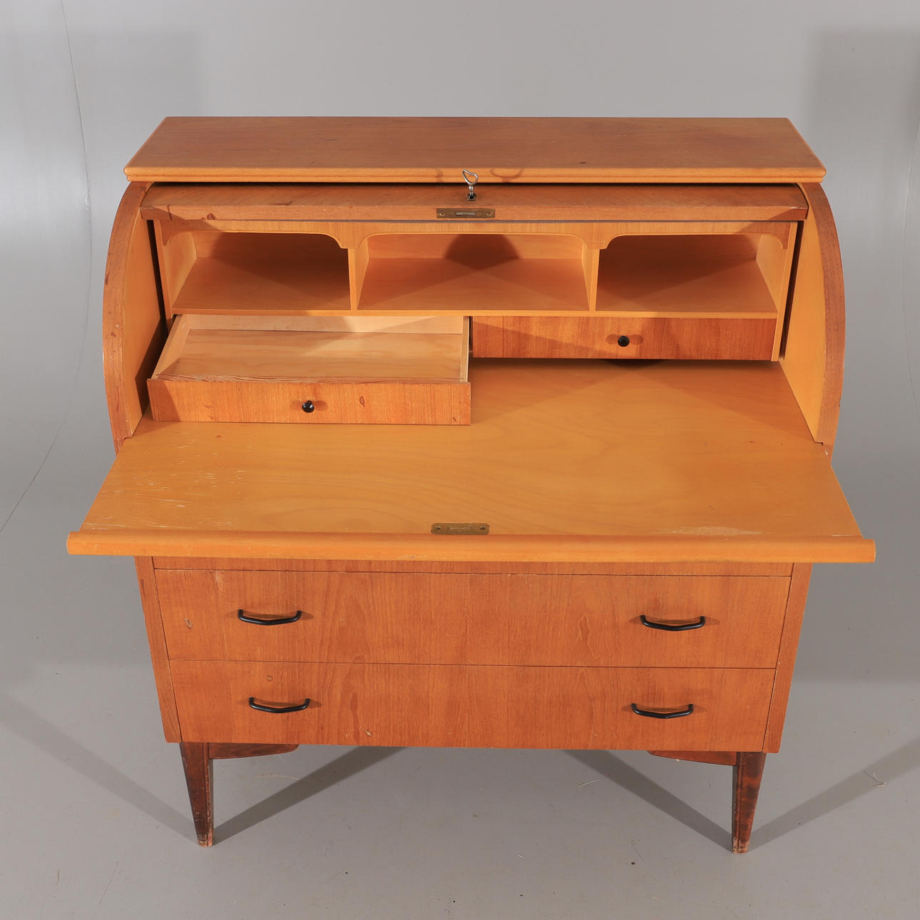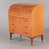 1807375. SEKRETÄR mit Rollklappe, Teak/Buche, Mitte 20. Jahrhundert.