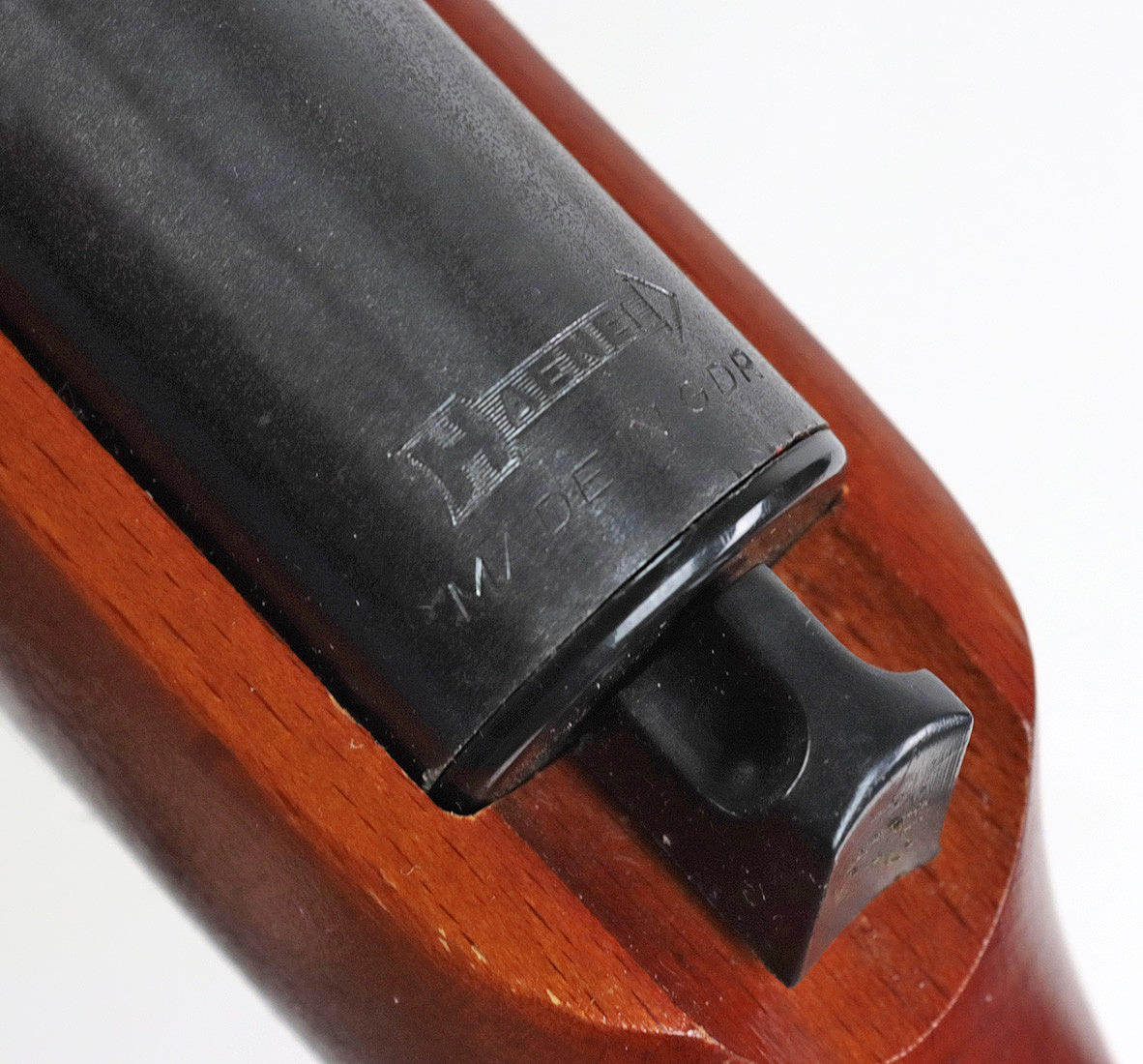 Sport- bzw. Übungsluftgewehr gemarkt für Haenel Suhl, Modell 310 mit langem Holzschaft, Kimme u. Korn, Kaliber 4,4 mm Bleirundkugel, gezogener Lauf, manuelle Sicherung, Druckluft-Gewehr DDR aus den 1960er Jahren (Waffenscheinfrei nach Einigungsvertrag), L ca. 106 cm.