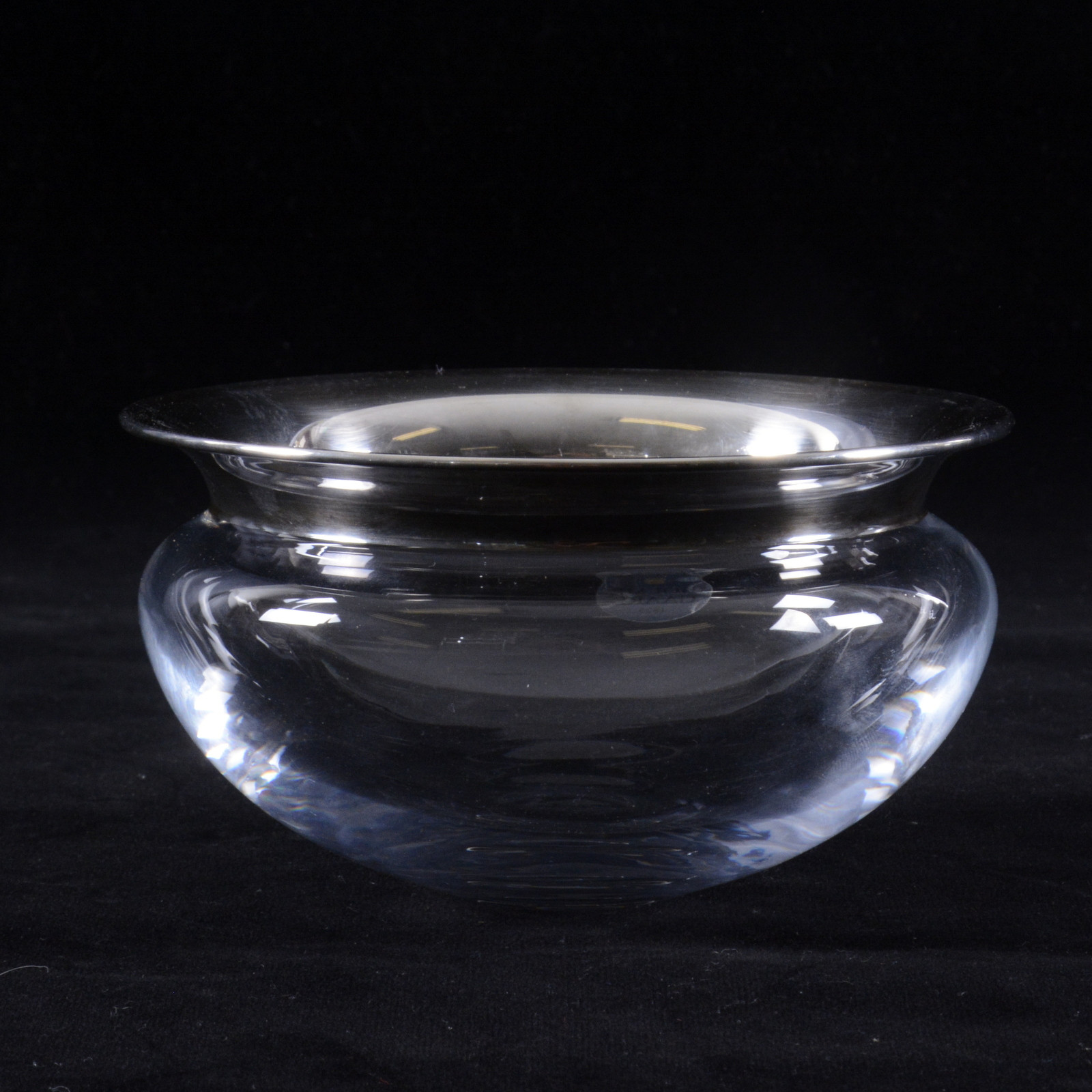 1808601. SCHALE MIT SILBERRAND, Glas, Holmegaard.