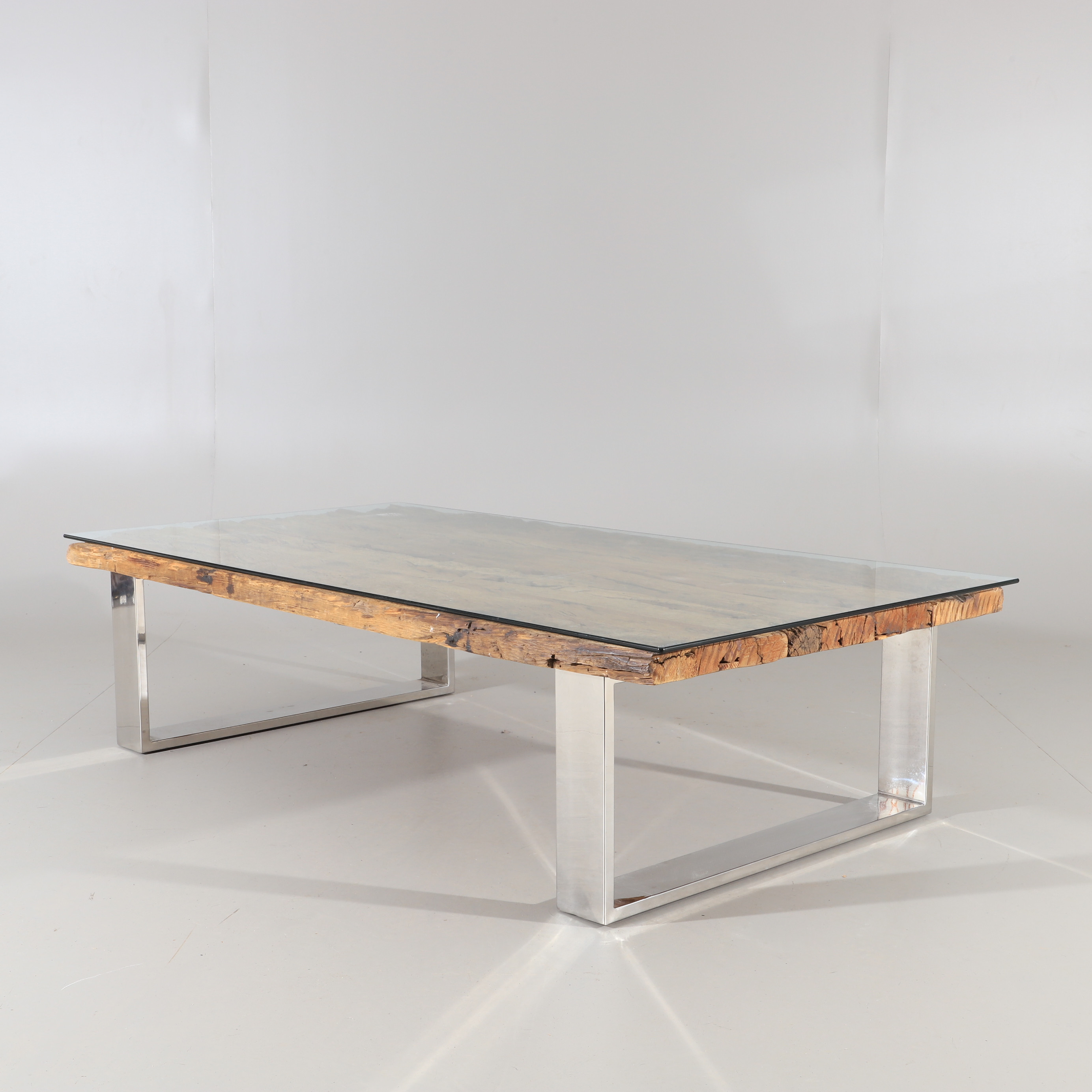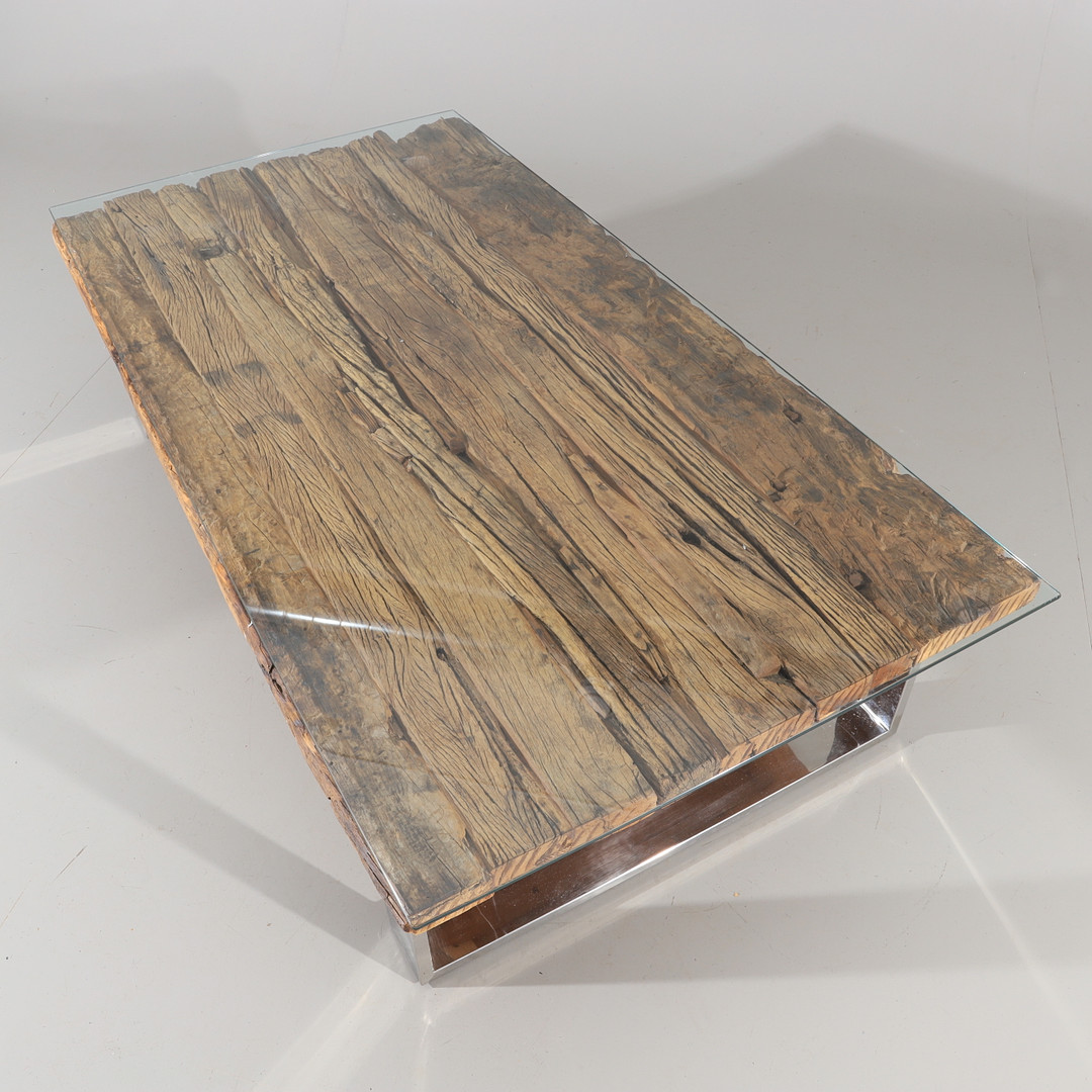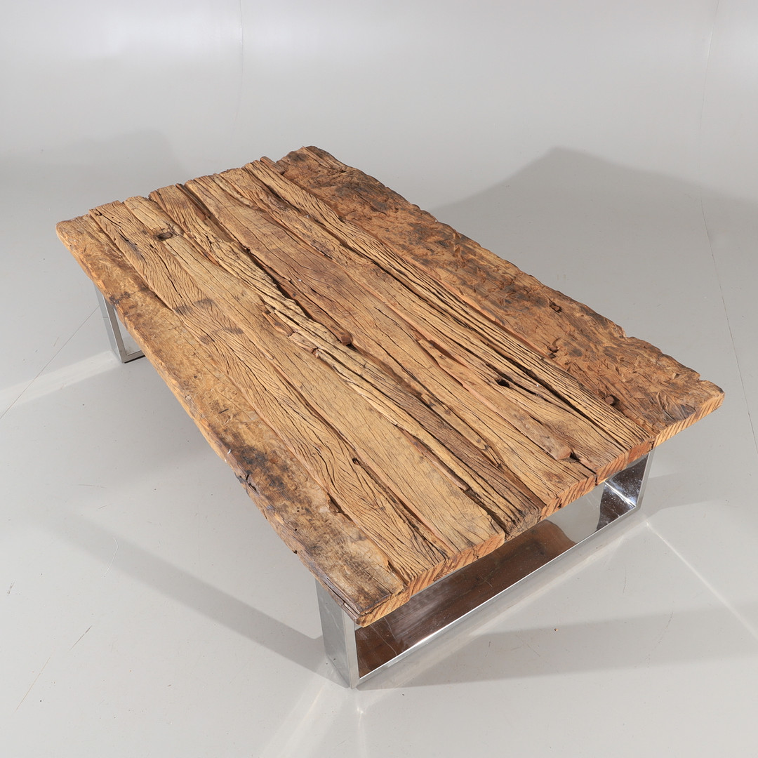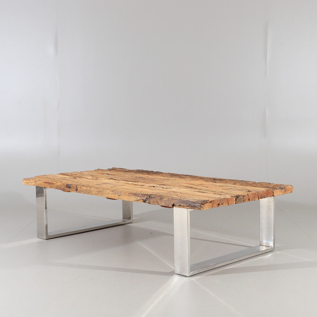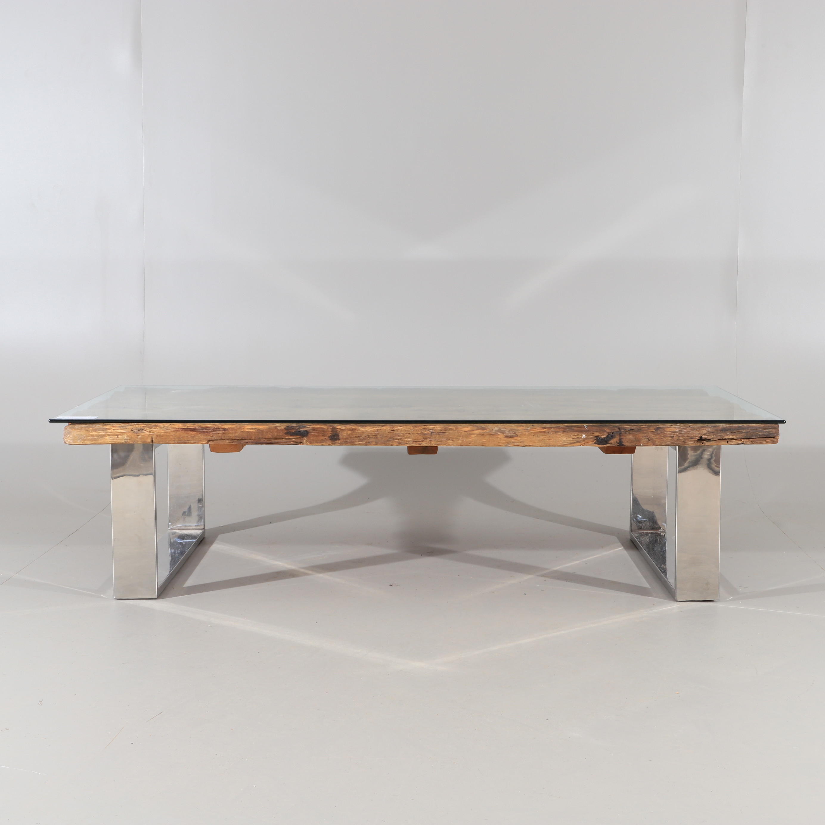 1810294. COUCHTISCH, Treibholz mit Chromfuß.