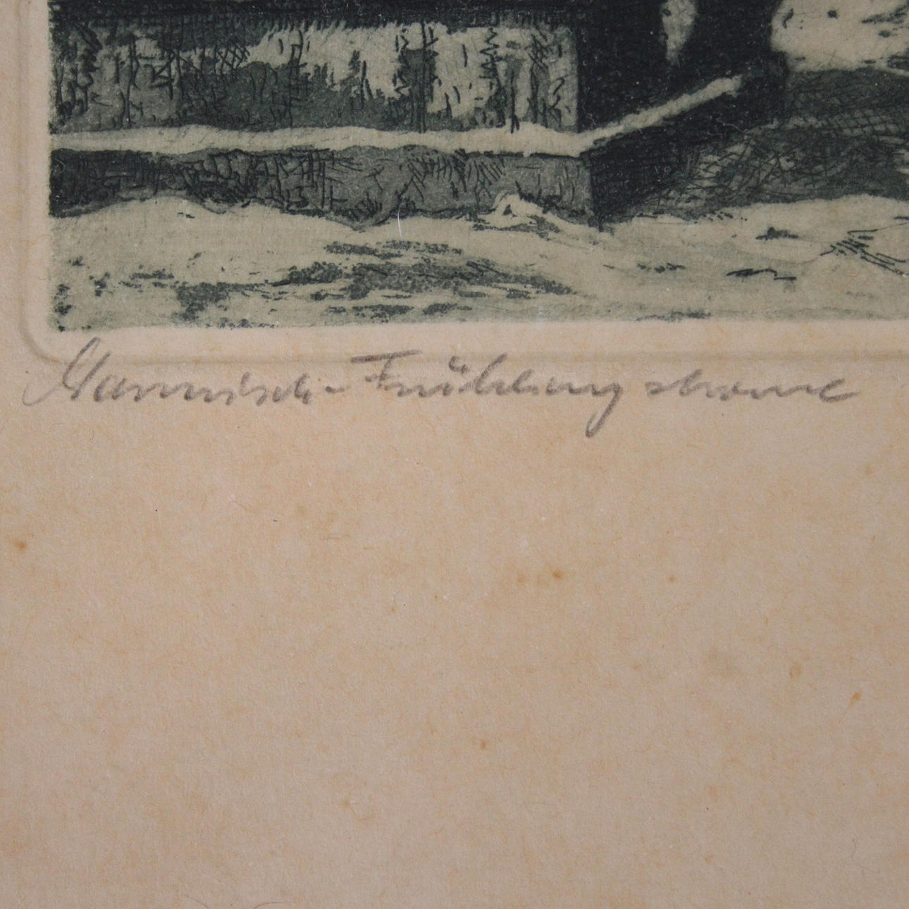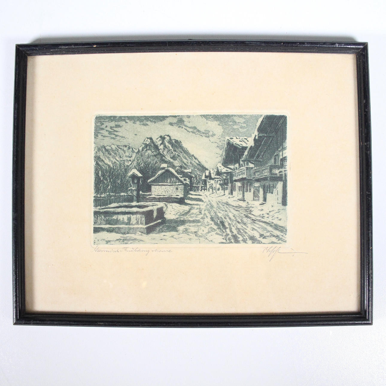 N. Buschbaum, Radierung, Druckgrafik-Multiple, 'Garmisch-Frühlingsstraße', hinter Glas gerahmt, unten links handschriftlich mit Bleistift betitelt sowie unten rechts signiert,