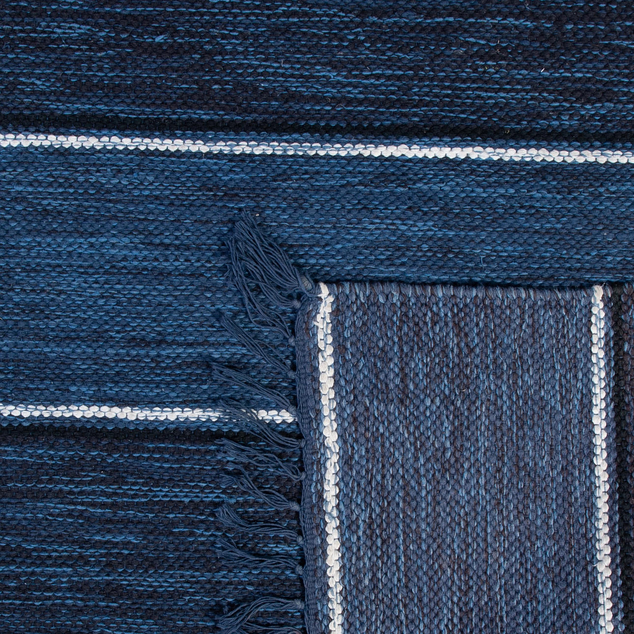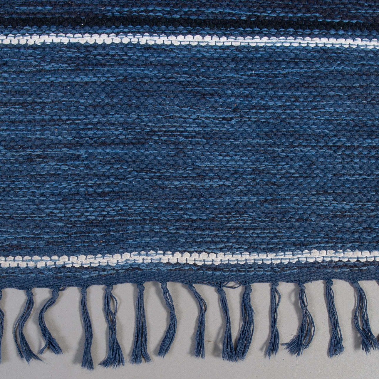 Großer schöner Flickenteppich in Blautönen, aus Baumwolle auf einer Baumwollkette gewebt.