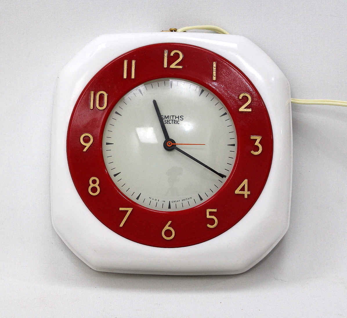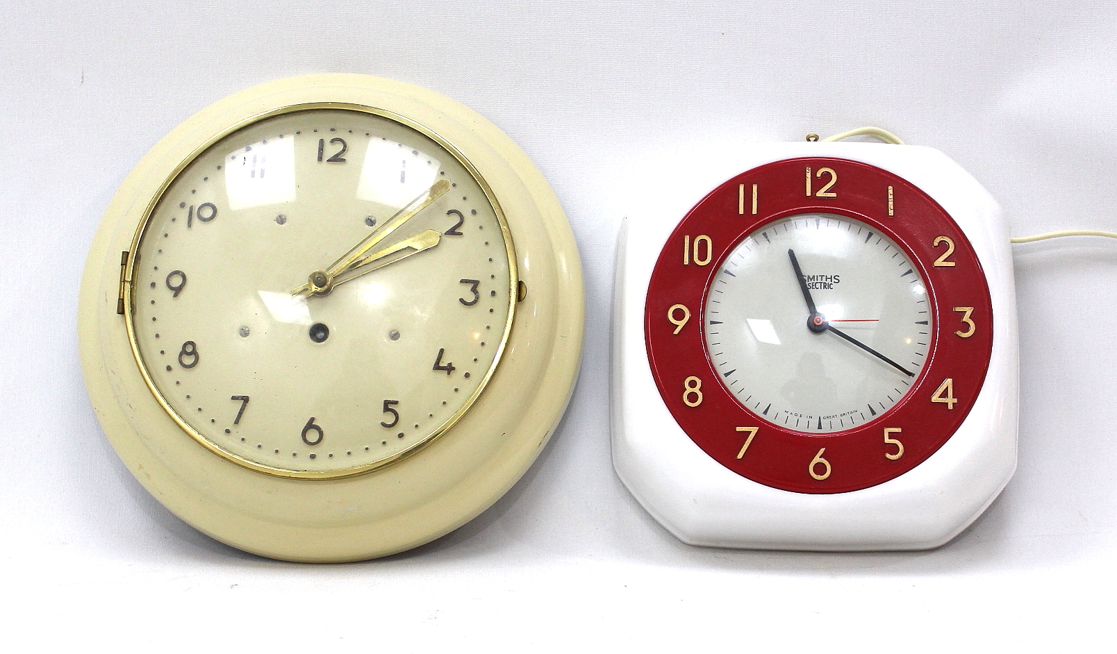 182483. WANDUHREN 2 Stück, emailliertes Blech und Kunststoff.