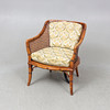 Verschleiß, beschädigter Sitz/Boden. Rattan mit kleineren Beschädigungen. Flecken.