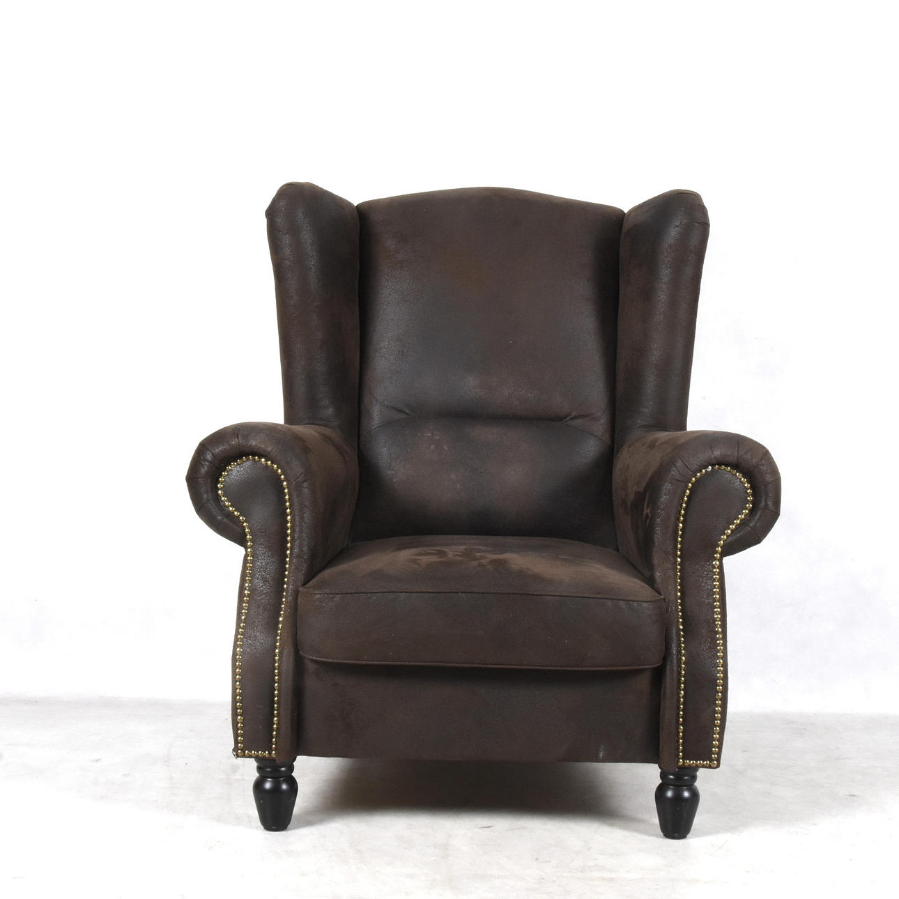 EARPATCH ARMCHAIR, Chesterfield-Modell, mit Wildleder bezogen.