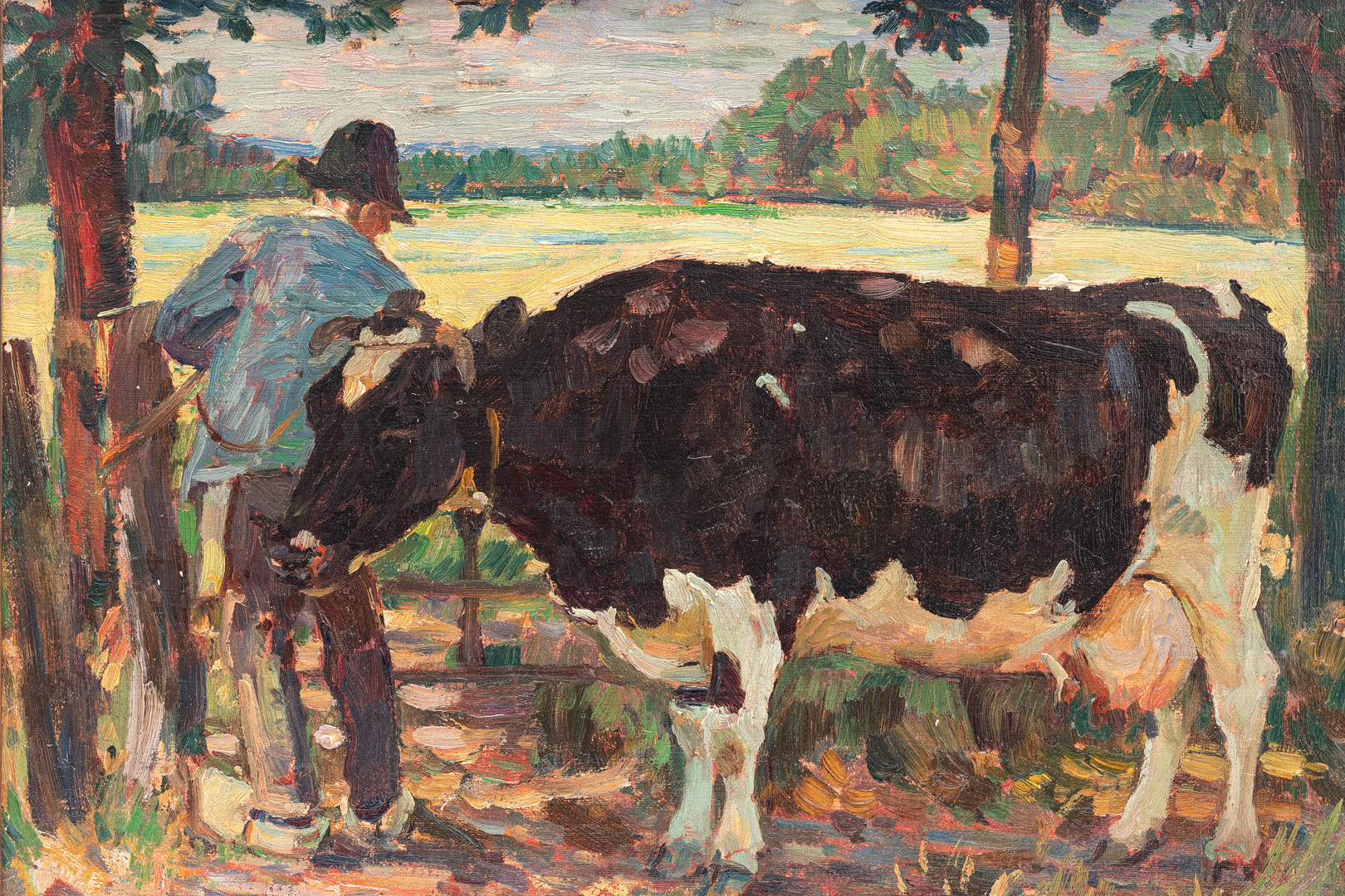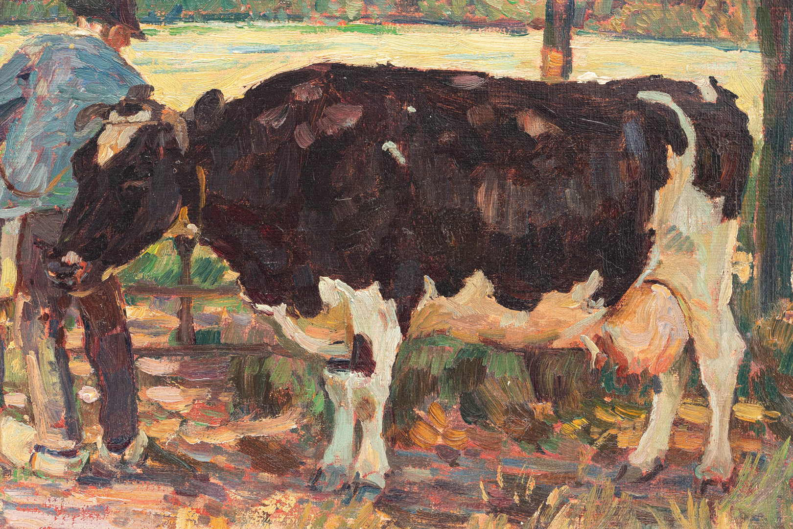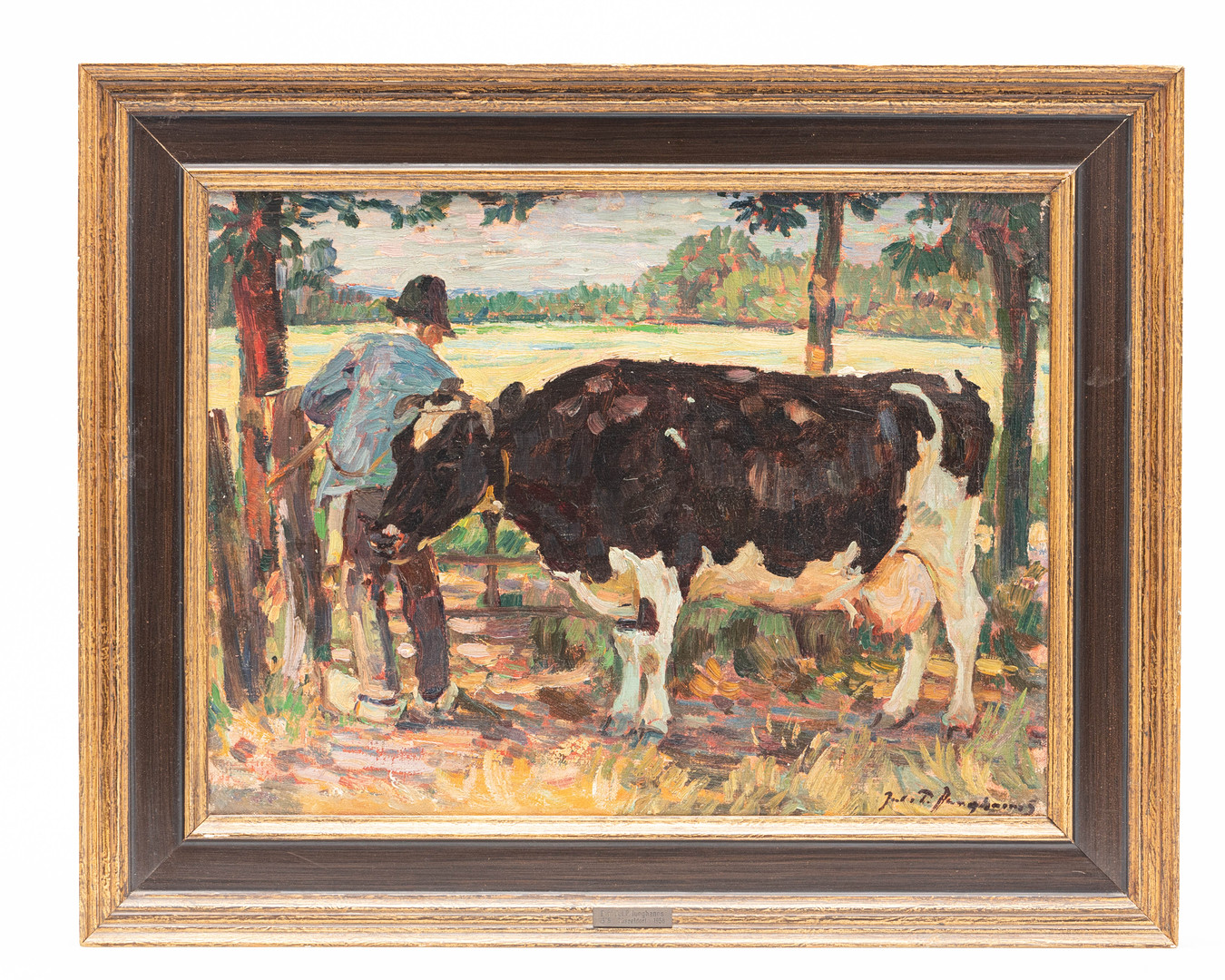 1826946. JULIUS PAUL JUNGHANNS. Gemälde, Bauer mit Kuh, Düsseldorf.