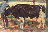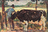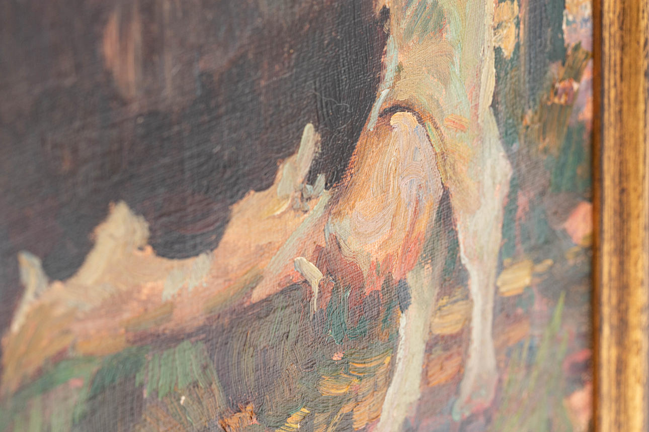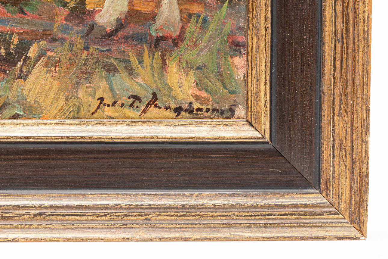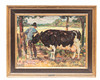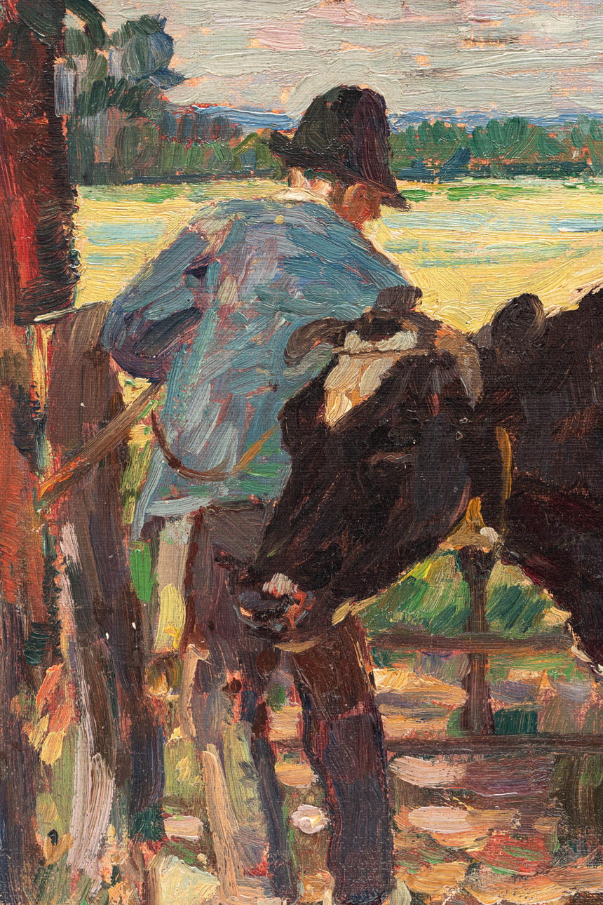 Julius Paul Junghanns (1876-1958), Gemälde, Bauer mit Kuh, Öl auf Leinwand, Düsseldorf. Darstellung eines Bauers mit einer Kuh vor einer Weide im sommerlichen Exterieur, unten rechts signiert, sowie unten am Rahmen bezeichnet, 33x43cm (45x56,5cm).