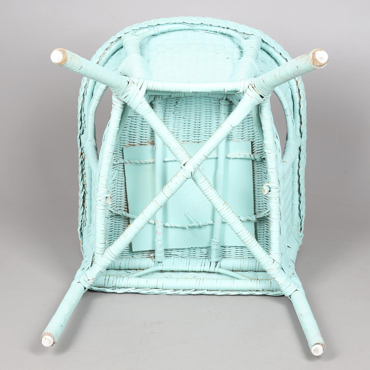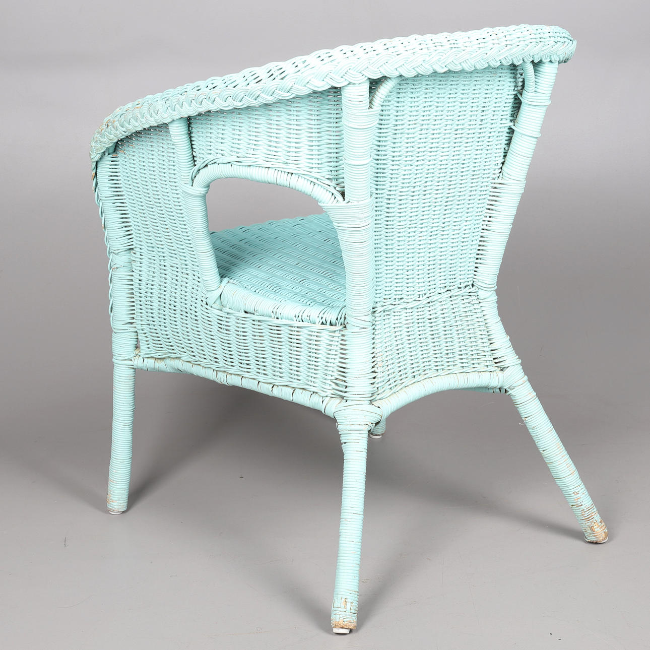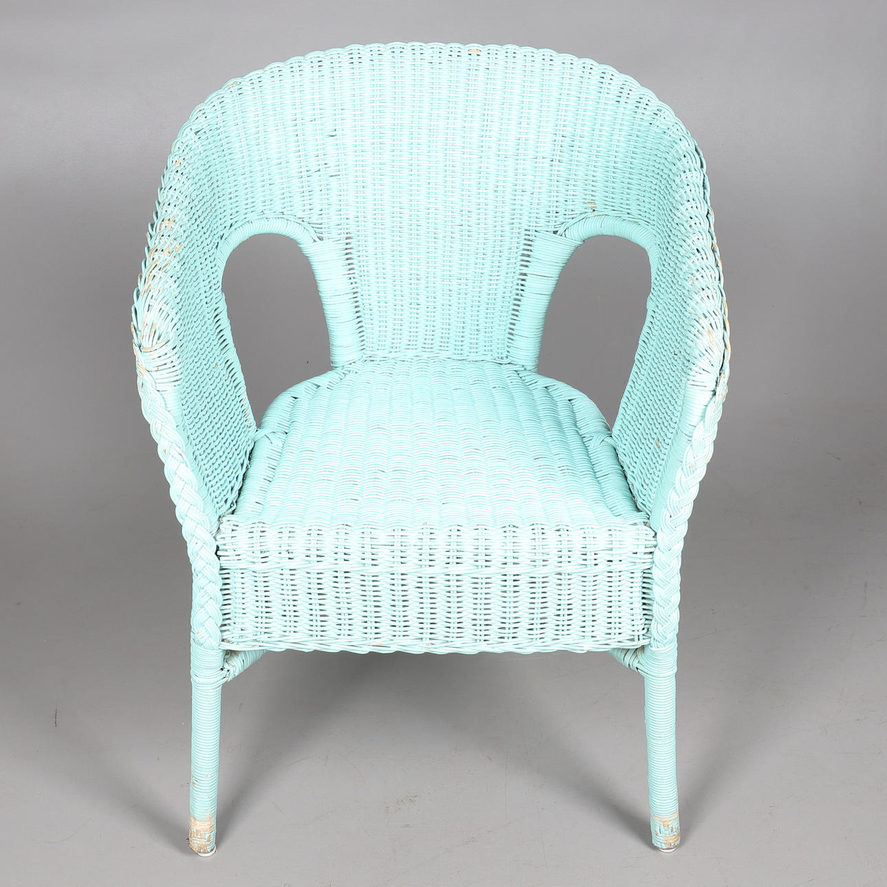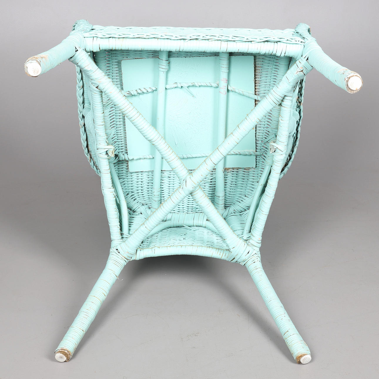 1832578. EIN TÜRKIS LACKIERTER LOYD LOOM STIL WEIDENSTUHL.