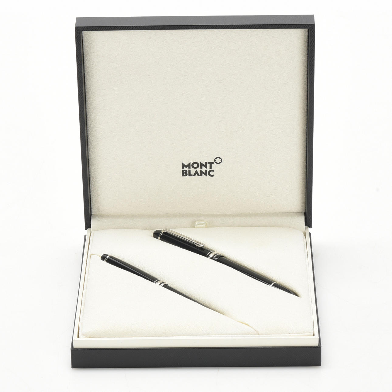 Box mit Kugelschreiber und Reservoir-Stift 'Meisterstück'. Inklusive Serviceanleitung und Patronen.