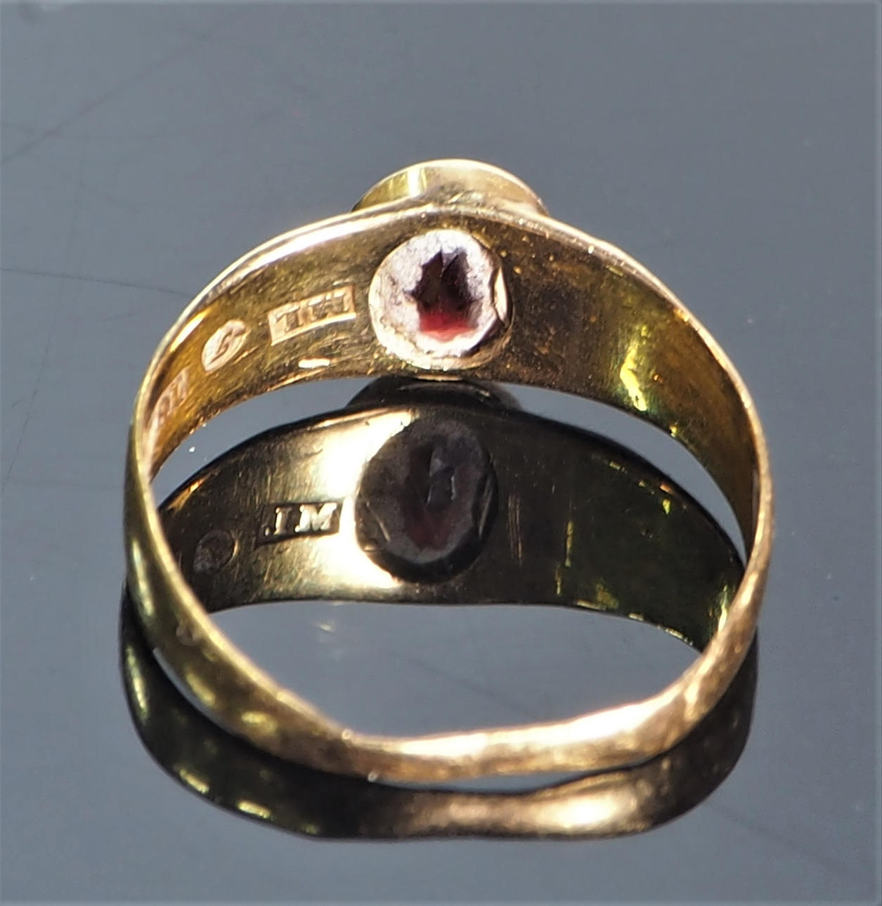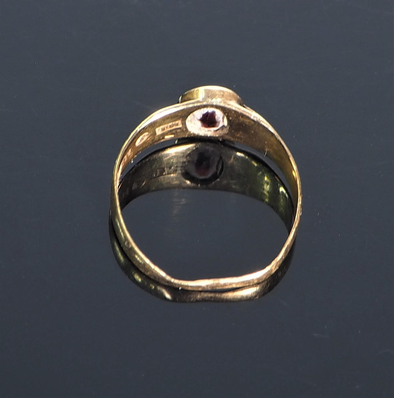 1841035. GOLDRING 18 K, mit rotem Stein.