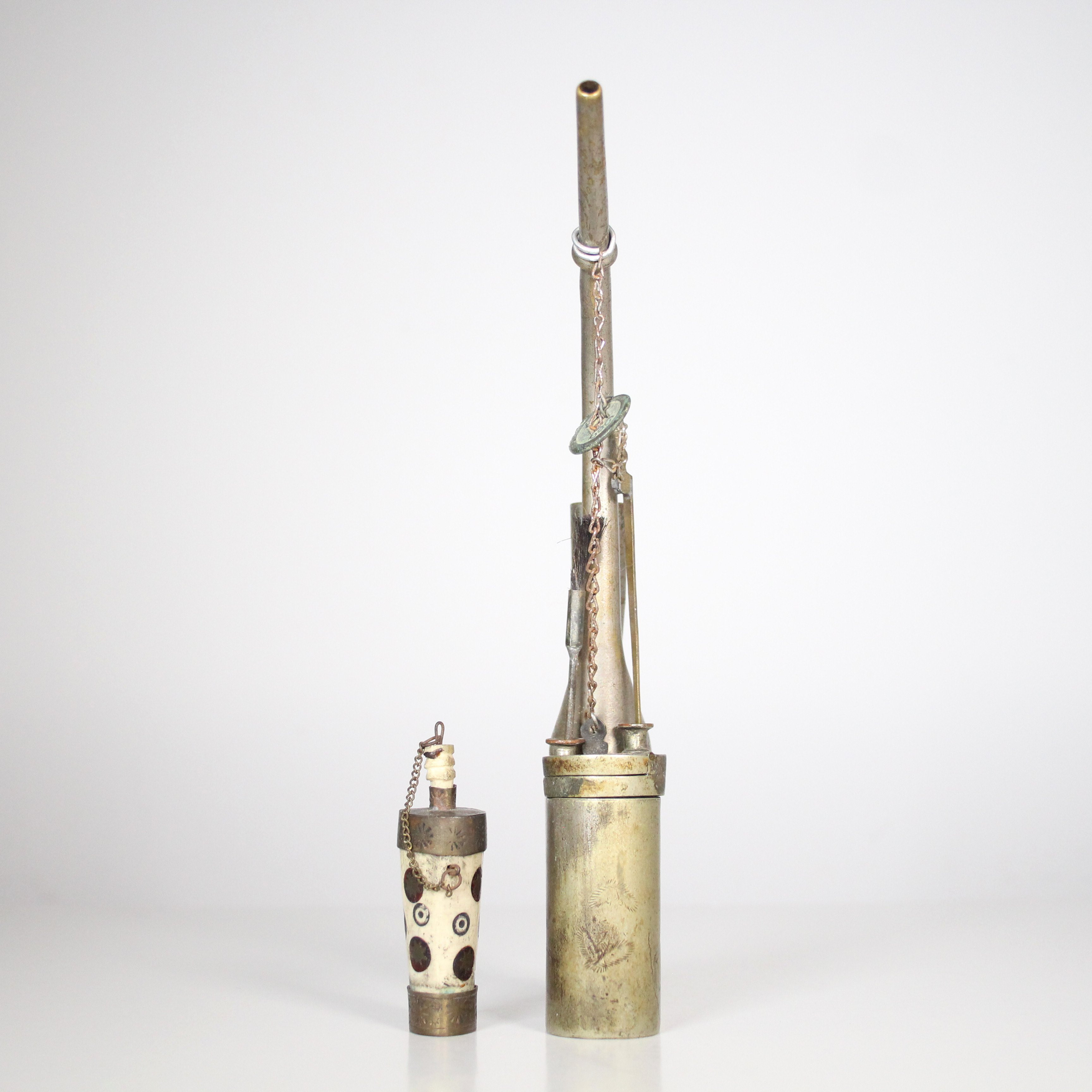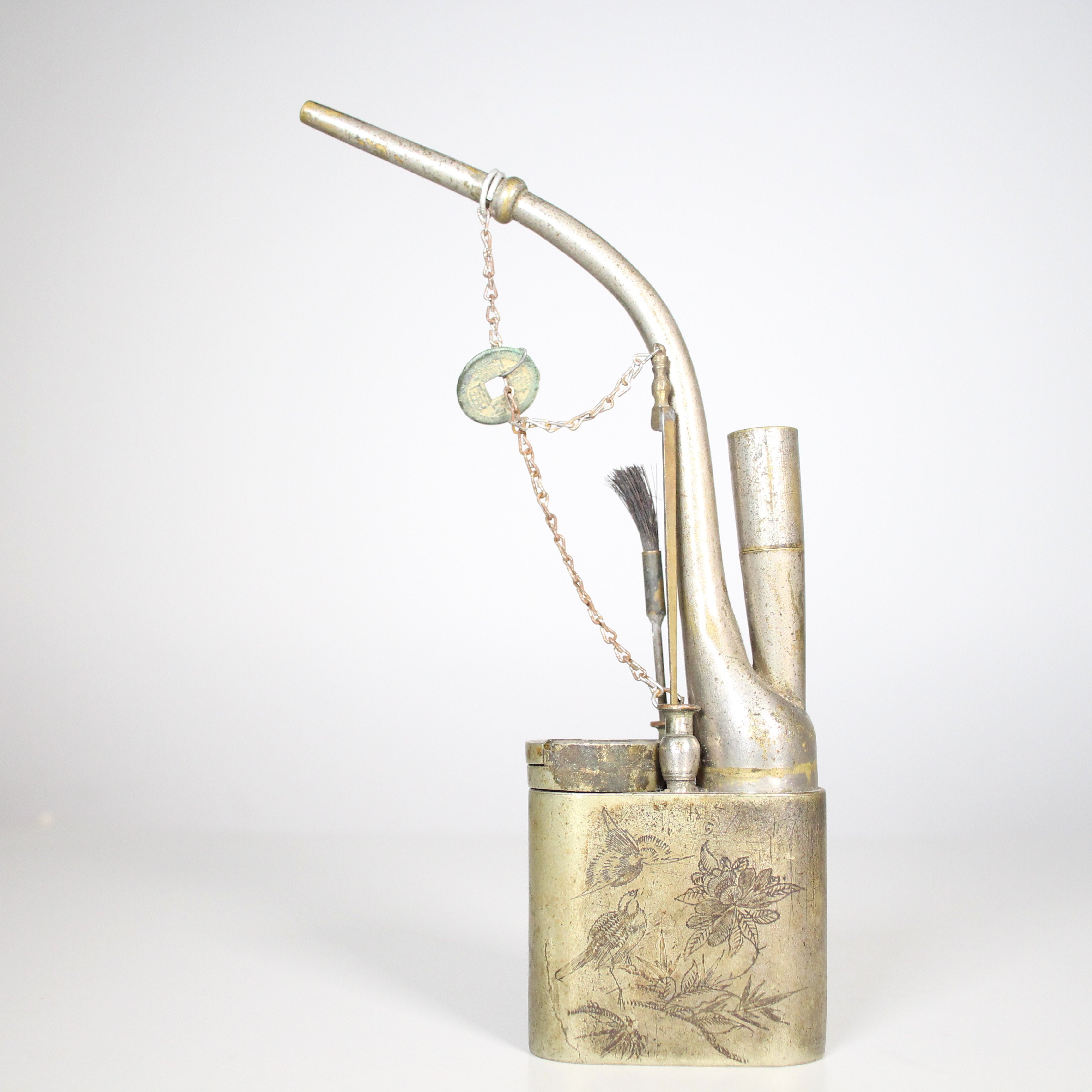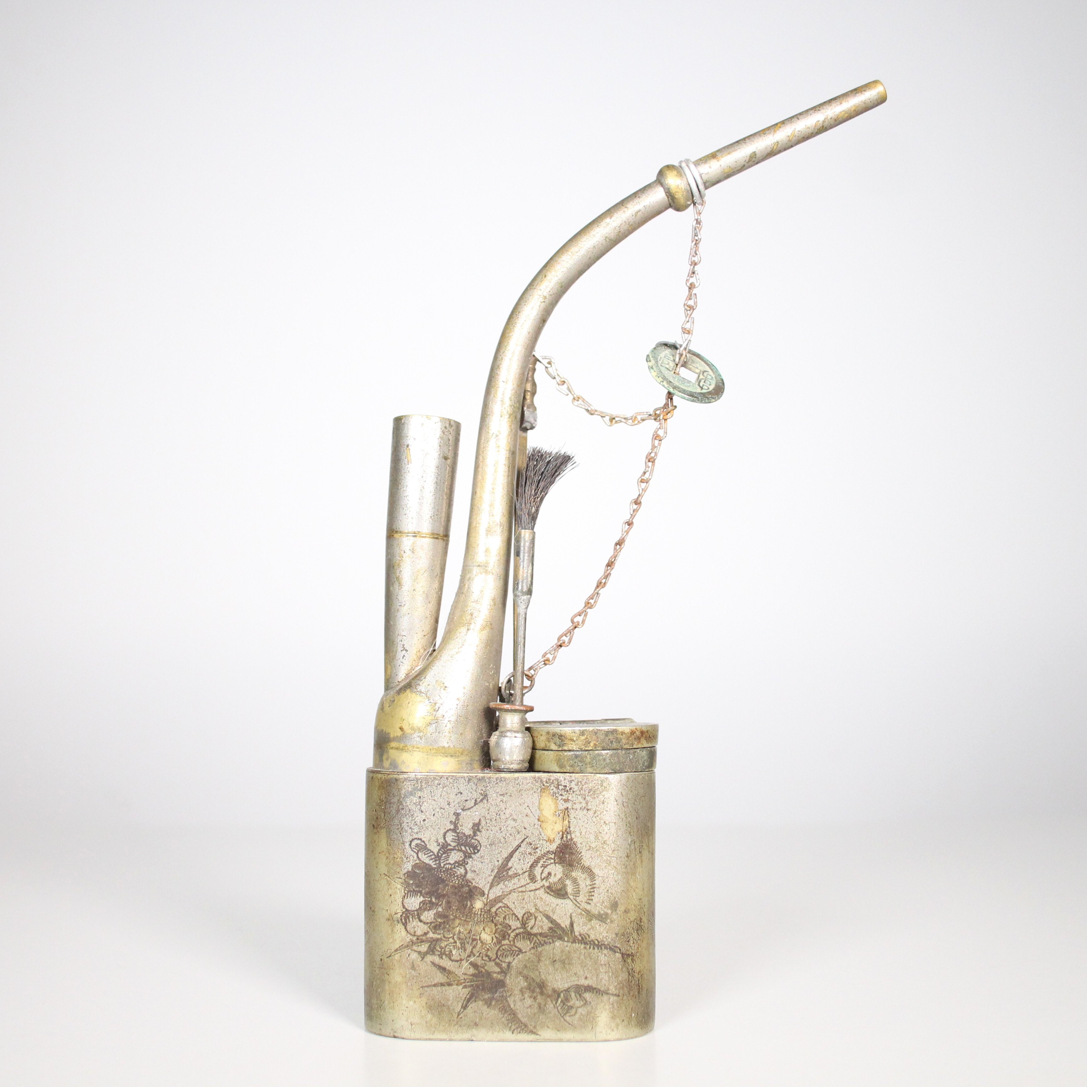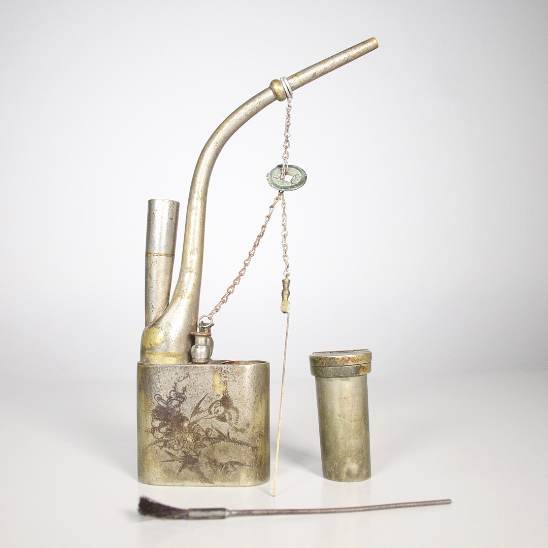 1841429. Chinesische Pfeife und Schnupftabak-Dose, Messing.