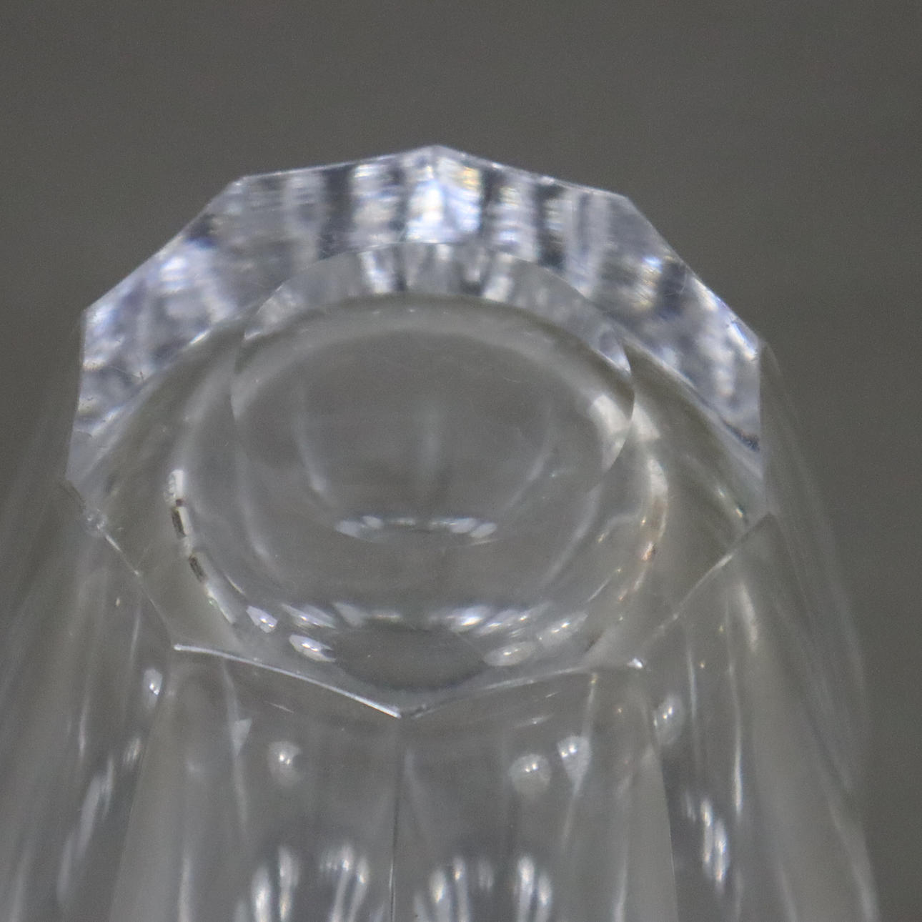 keulenförmige Wandung acht- bzw. zehnfach facettiert, größere Vase unterseitig mit Firmensignet „Moser“, H. ca.20,5 bzw. 16 cm.