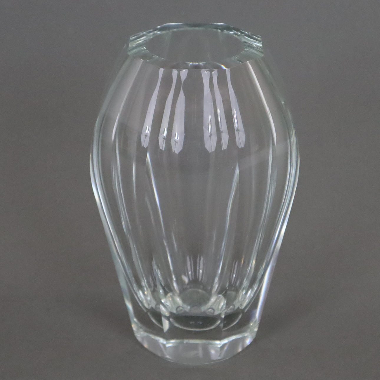 - 2 GLASVASEN - Klarglas, Firmensignet „Moser“.