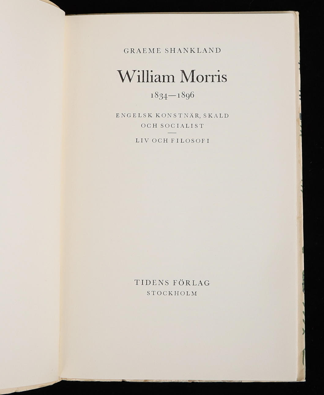 William Morris, Art and the Beauty of the Earth, Chiswick Press for Longmans, London, 1898 Graeme Shankland, William Morris, Biographie in schwedischer Übersetzung, Tidens Förlag, Stockholm, 1955.
