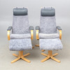 1850741. ARMCHAIRS, ein Paar, und Hocker, Söderbergs.