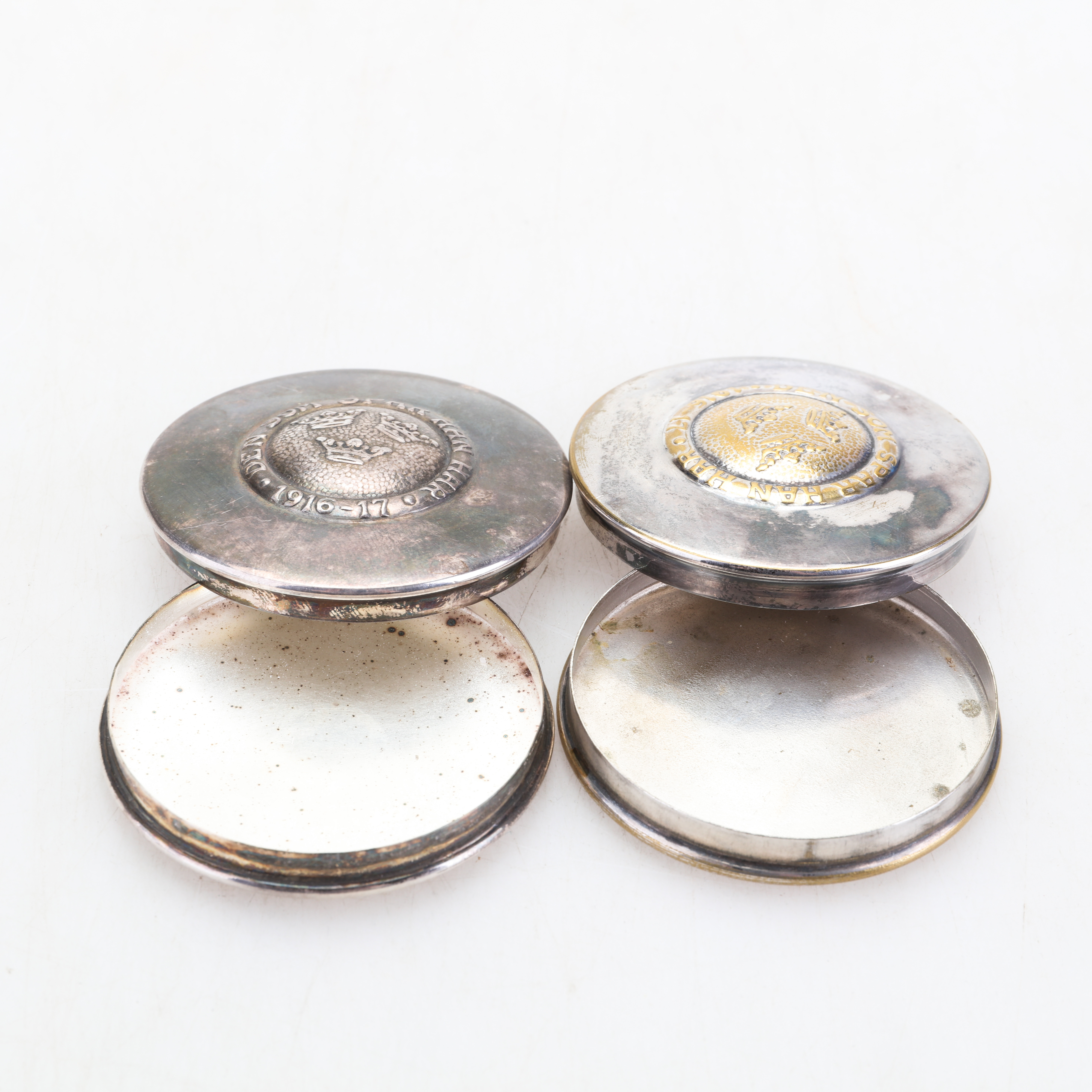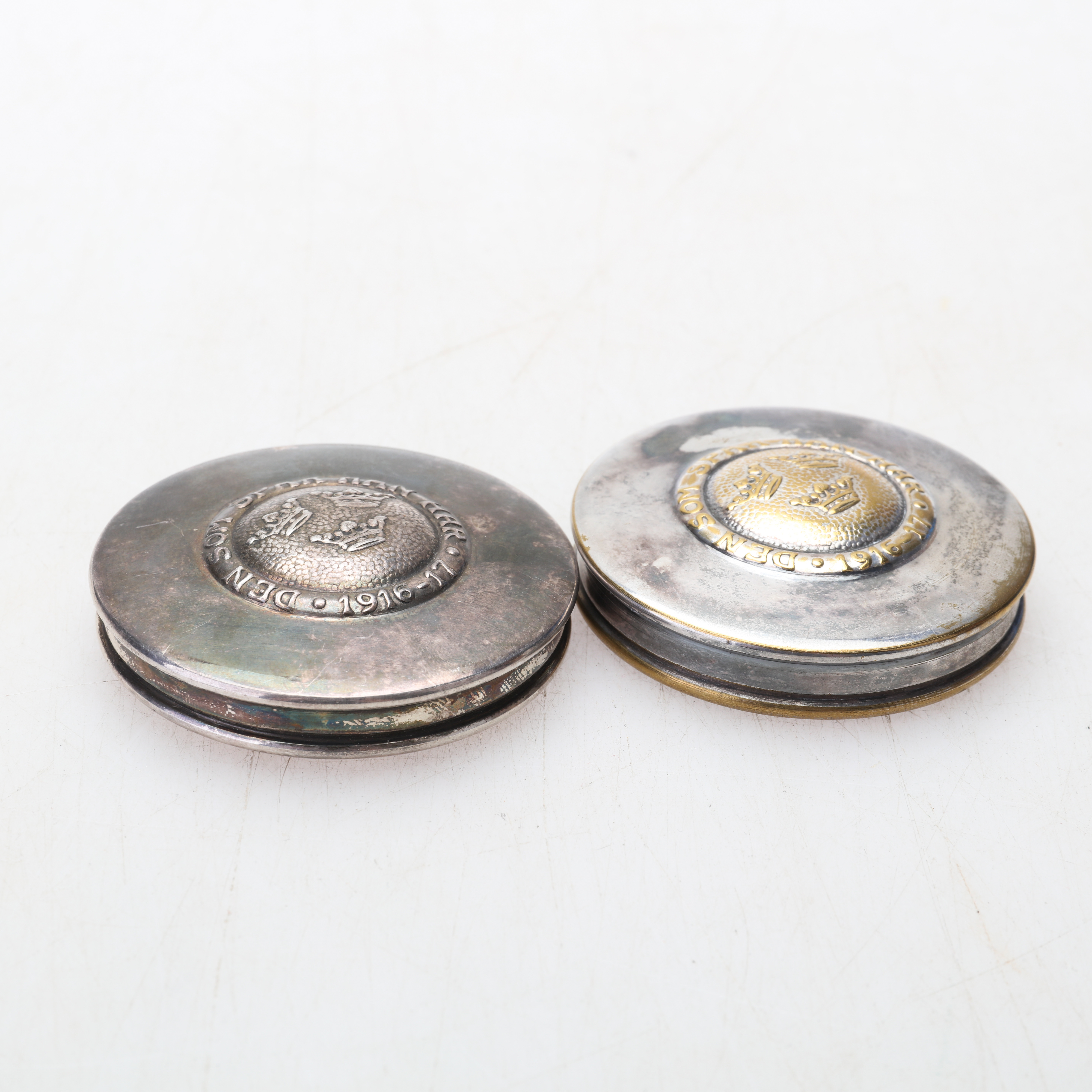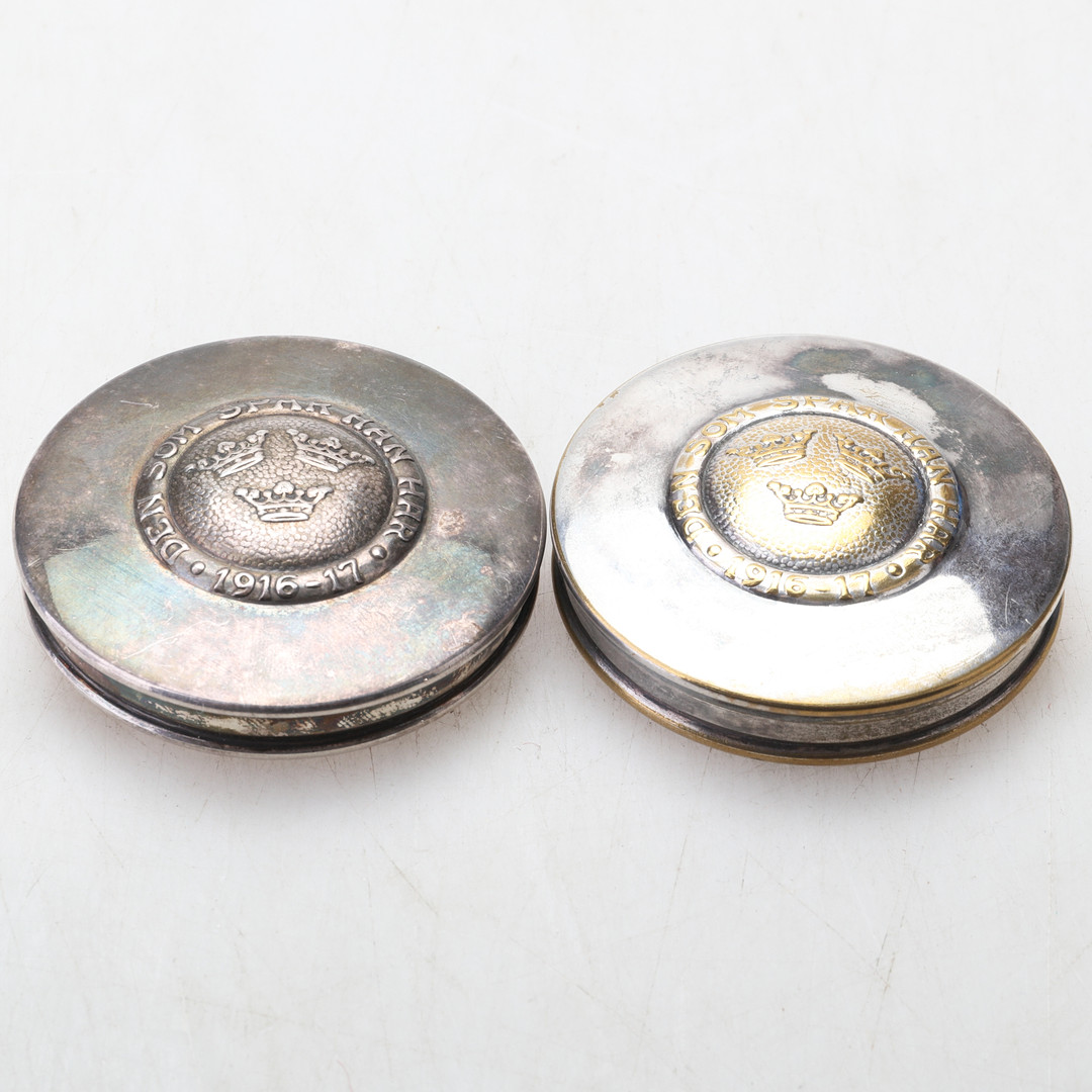 1854035. BOXEN, 2 Stück, drei Kronen, Neusilber.