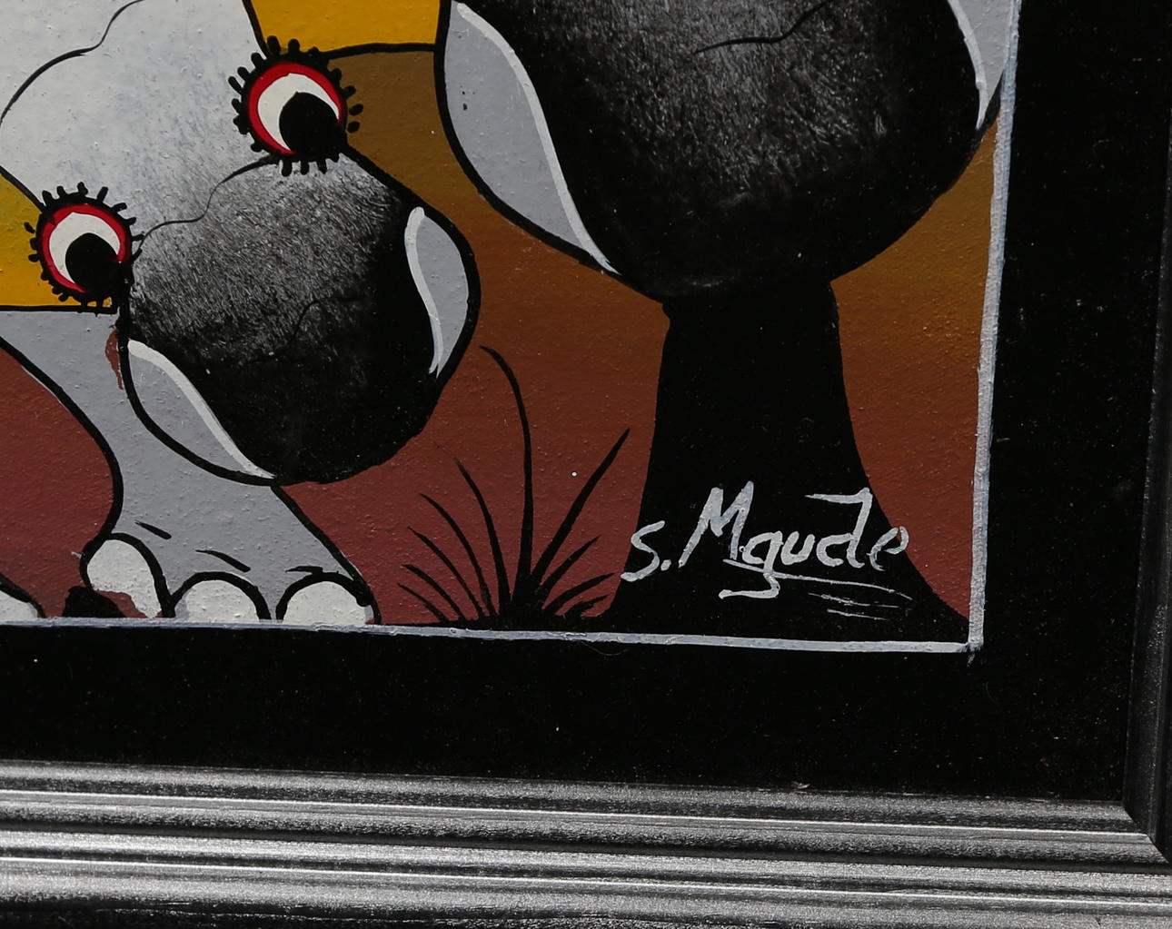OIDENTIFIERAD KONSTNÄR. Tinga-Tinga-Malerei. Signiert S. Mgude.