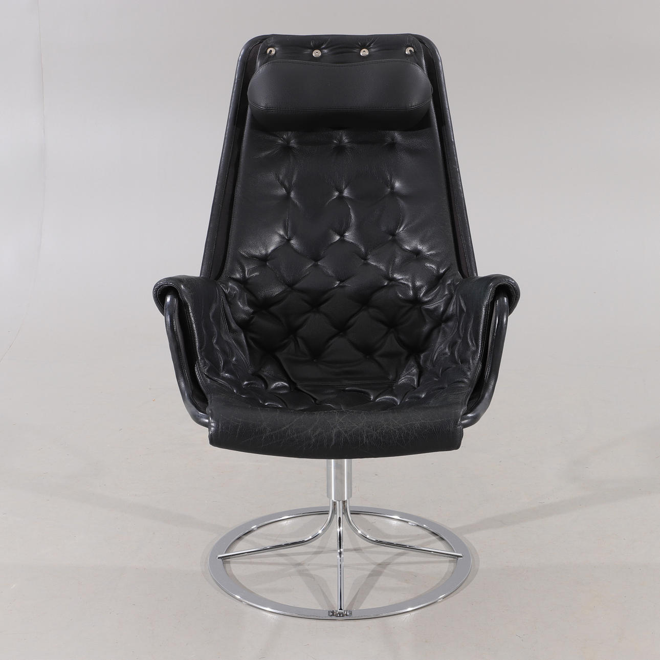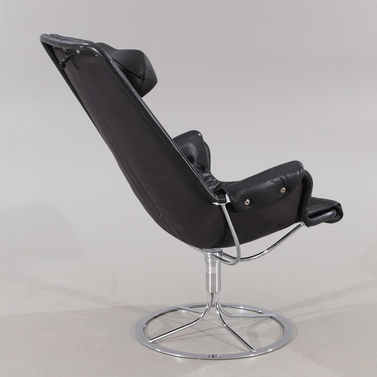 1855803. BRUNO MATHSSON. Sessel. "Jetson", schwarze Lederausstattung, Dux.