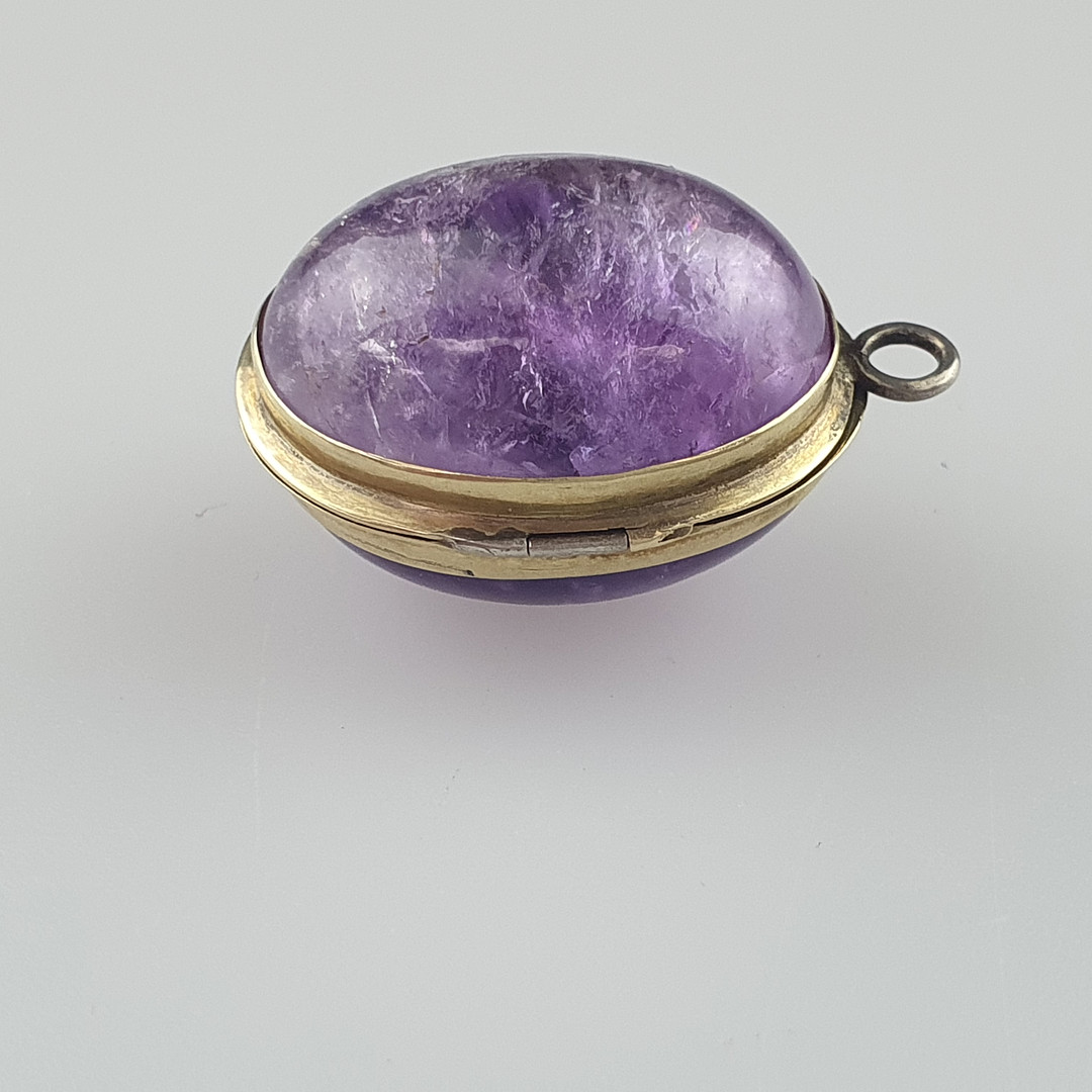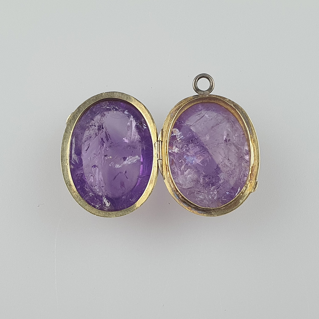 1857102. - Amethyst-MEDAILLONANHÄNGER, aufklappbar.