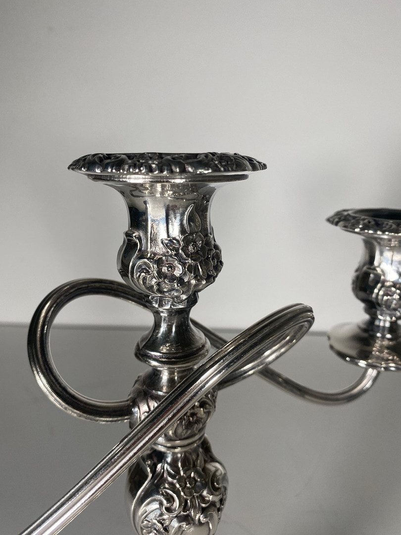1859610. Zwei Dreiarmiger Kerzenständer, Versilbert.