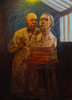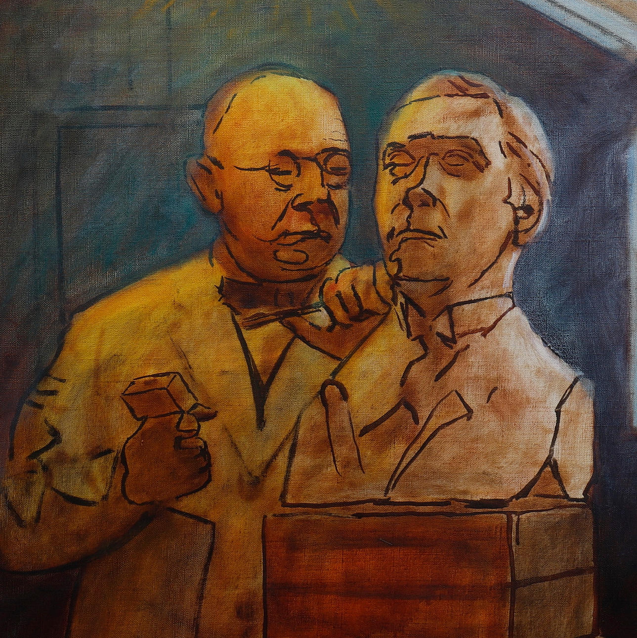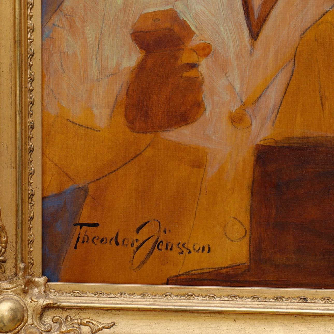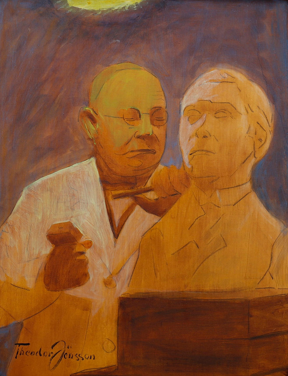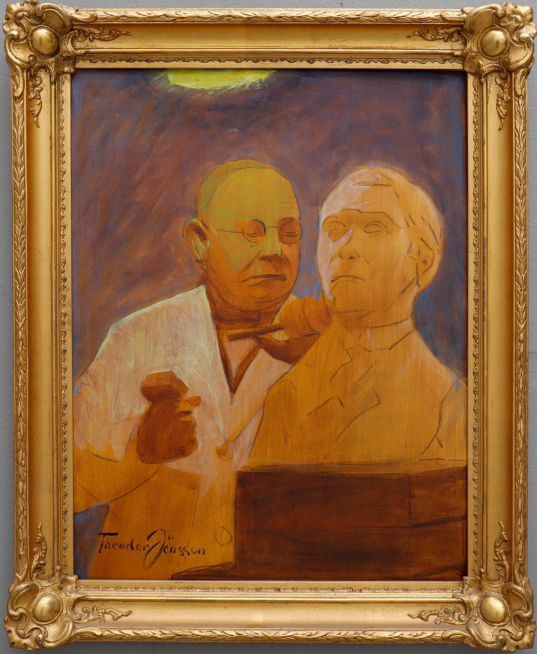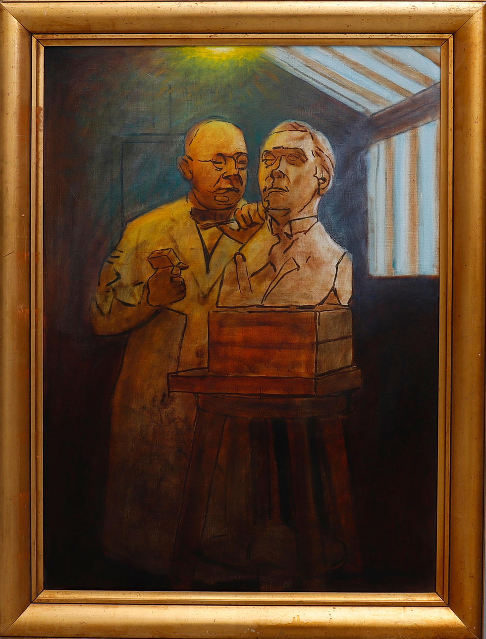 Öl auf Leinwand, nicht signiert, zeigt Edvard Trulsson in seinem Atelier, 107x76 cm. Inklusive Vorstudie für die Malerei.