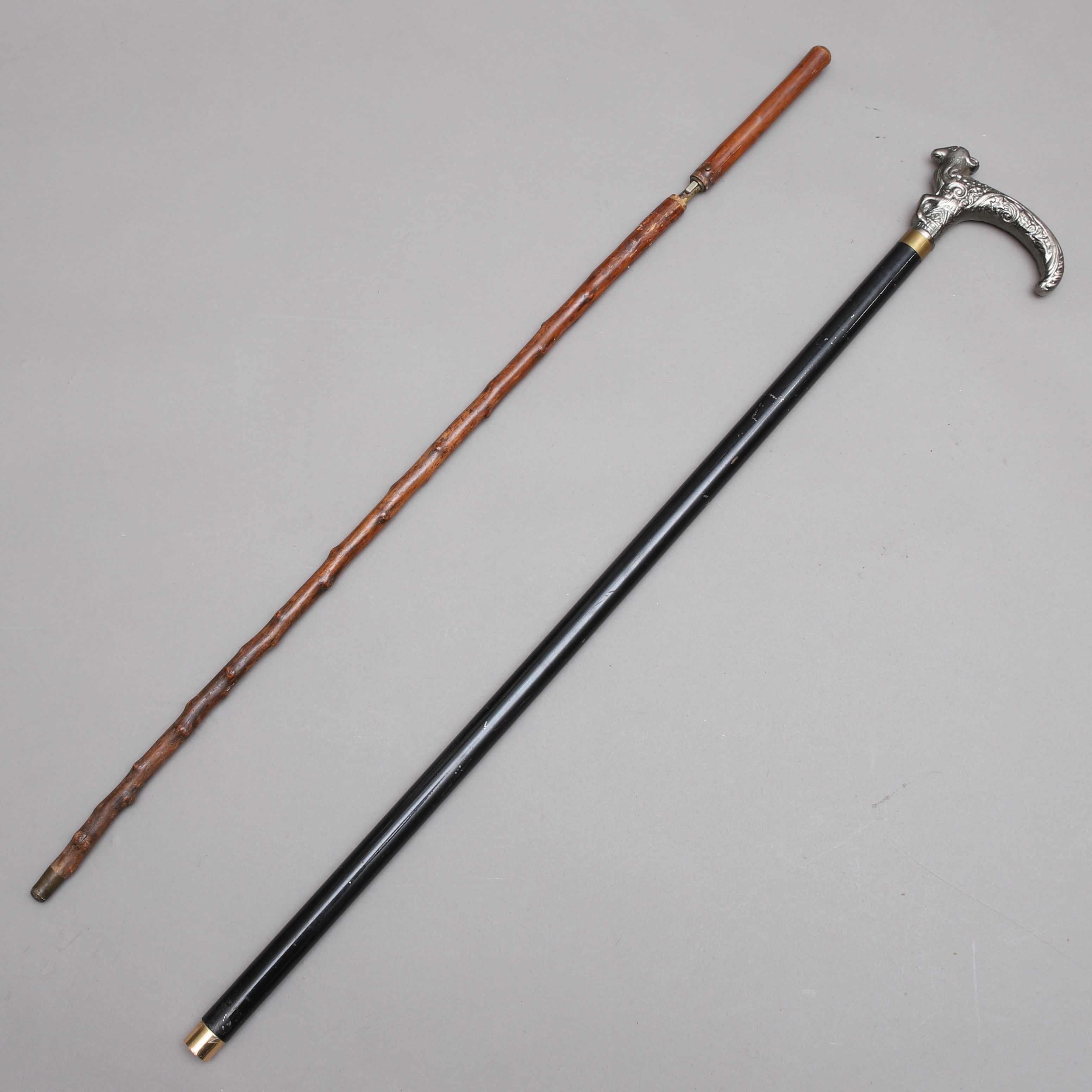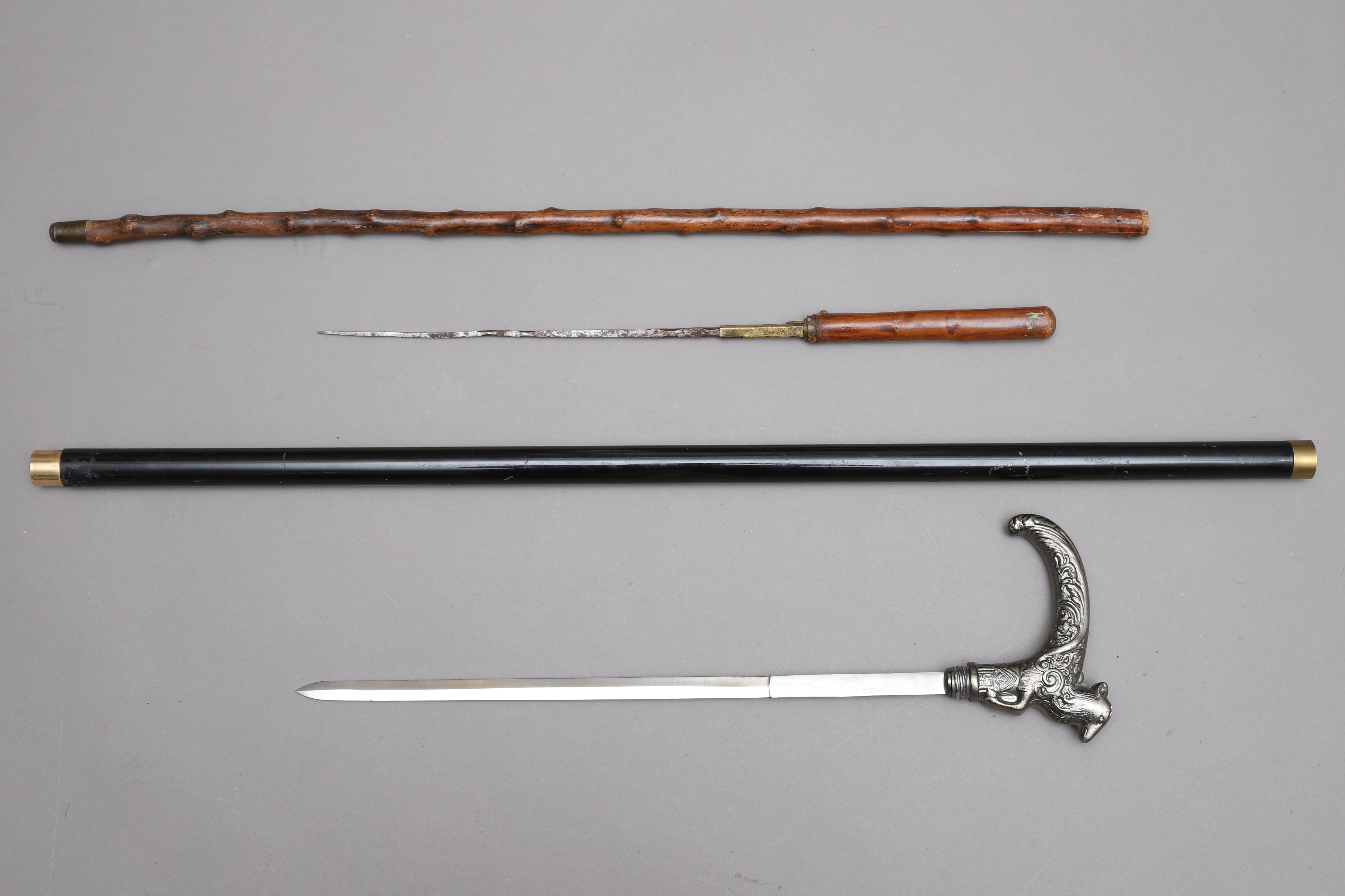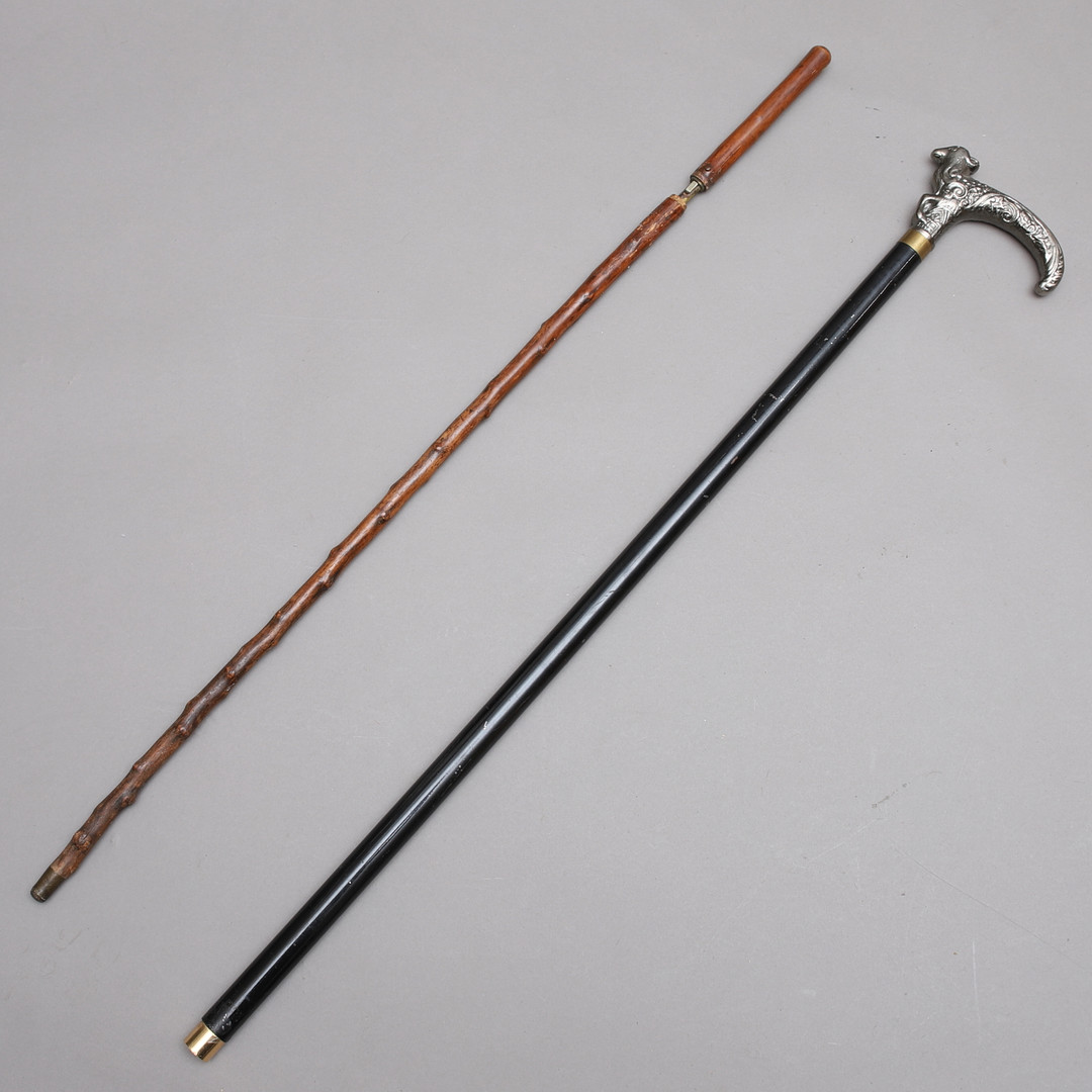 1862963. STÖCKE MIT DOLCH, 2 Stück, Holz & Metall.