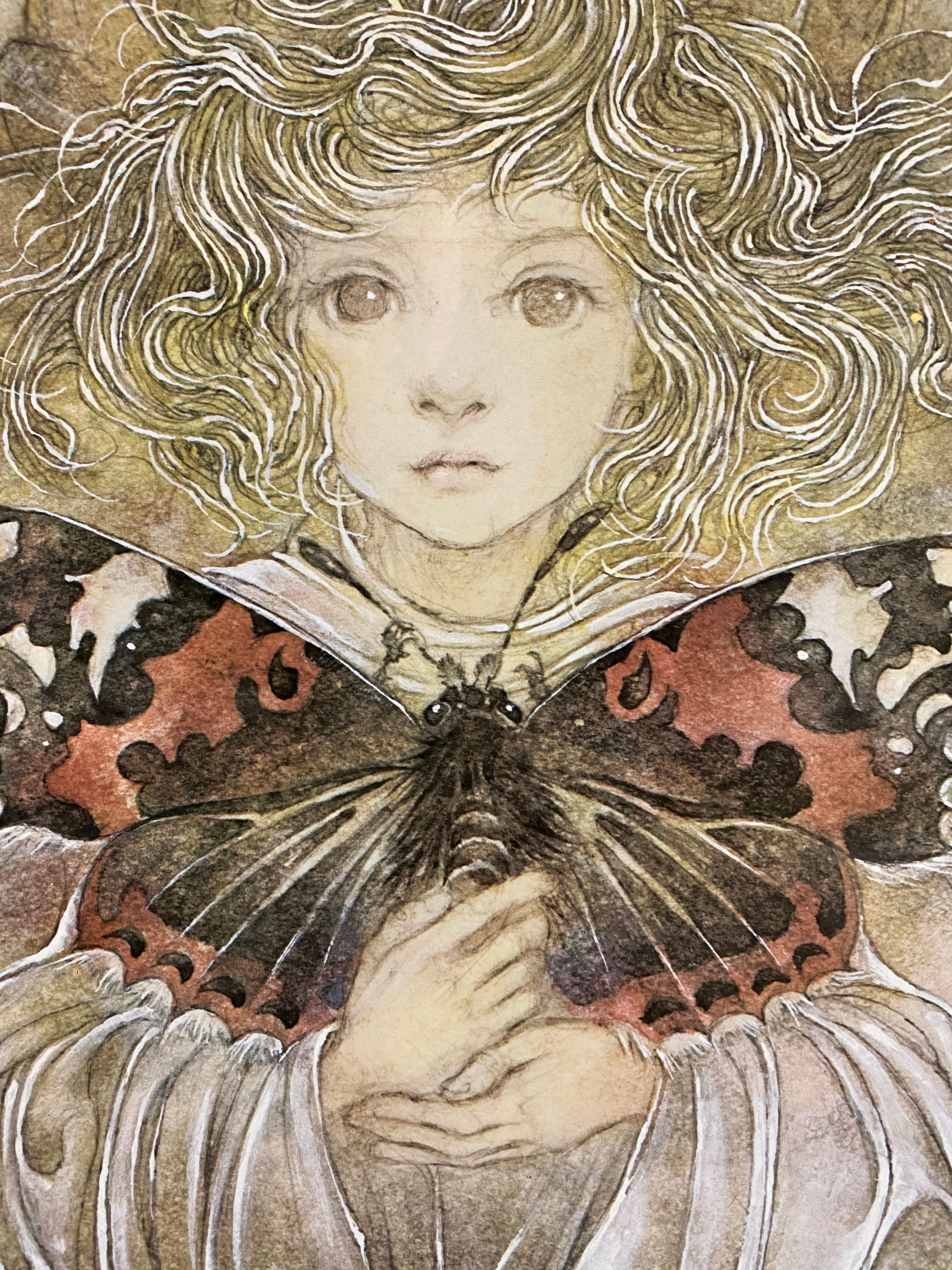 1863771. - SULAMITH WÜLFING. Mädchen mit Schmetterling, Farboffsetdruck.