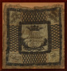 Seidentuch zum Abdecken des Kommunionkelches. Stickerei und Spitze in Silberfaden. Mittentext: „JESU CHRISTI true BLOOD“ Ecktexte: „Gab GyllenGahm“, „Christina Kafle“, „Anno“ „1713“ Rahmenmaße ca. 62x59 cm. "Fägne-rim" von 1742 kommt mit Provenienz: Familie Gahm.