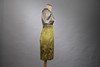 Puffärmel, hoch geschnittene Taille (Taille ca. 67 cm) aus 54 % Baumwolle 46 % Acetat, verziert mit 100 % Seide. Rückenlänge 88 cm.