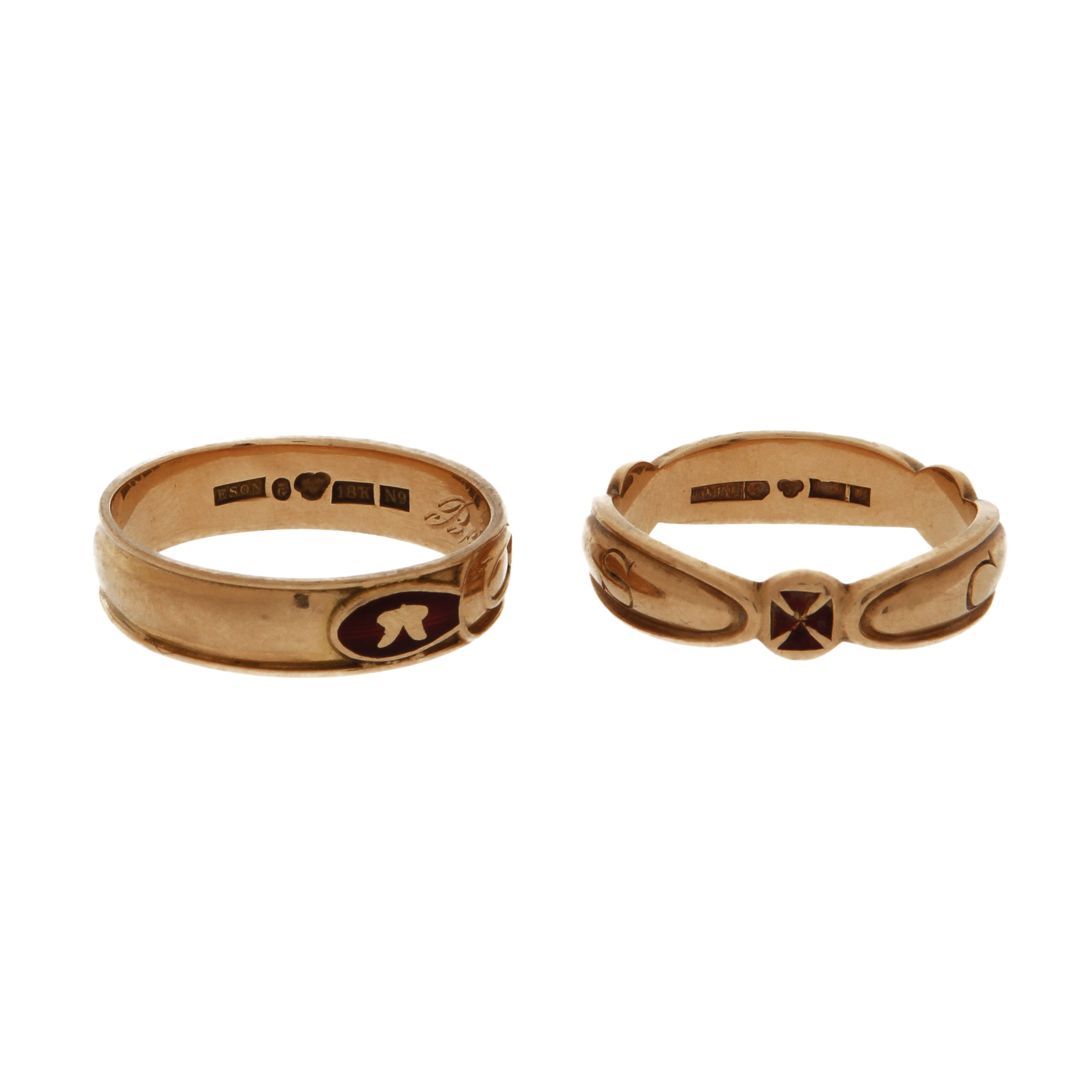 187398. RINGE, 2 Stück. 18 K und Emaille.