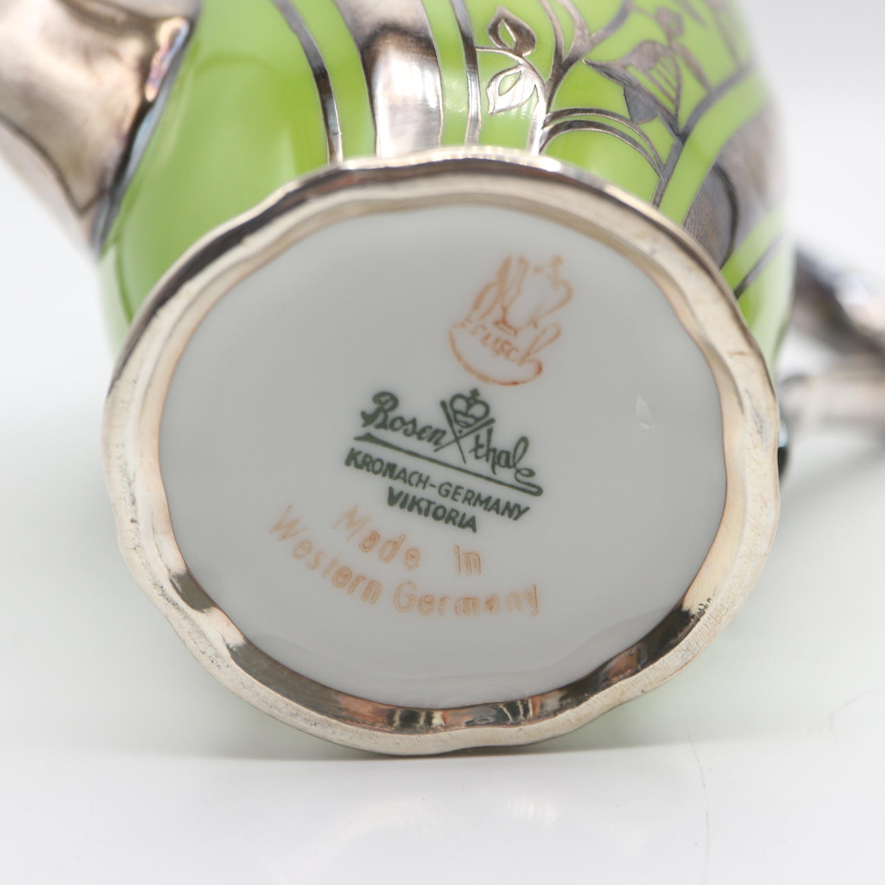 Rosenthal Mokka Service, Silber Overlay, Grün, Signiert.
