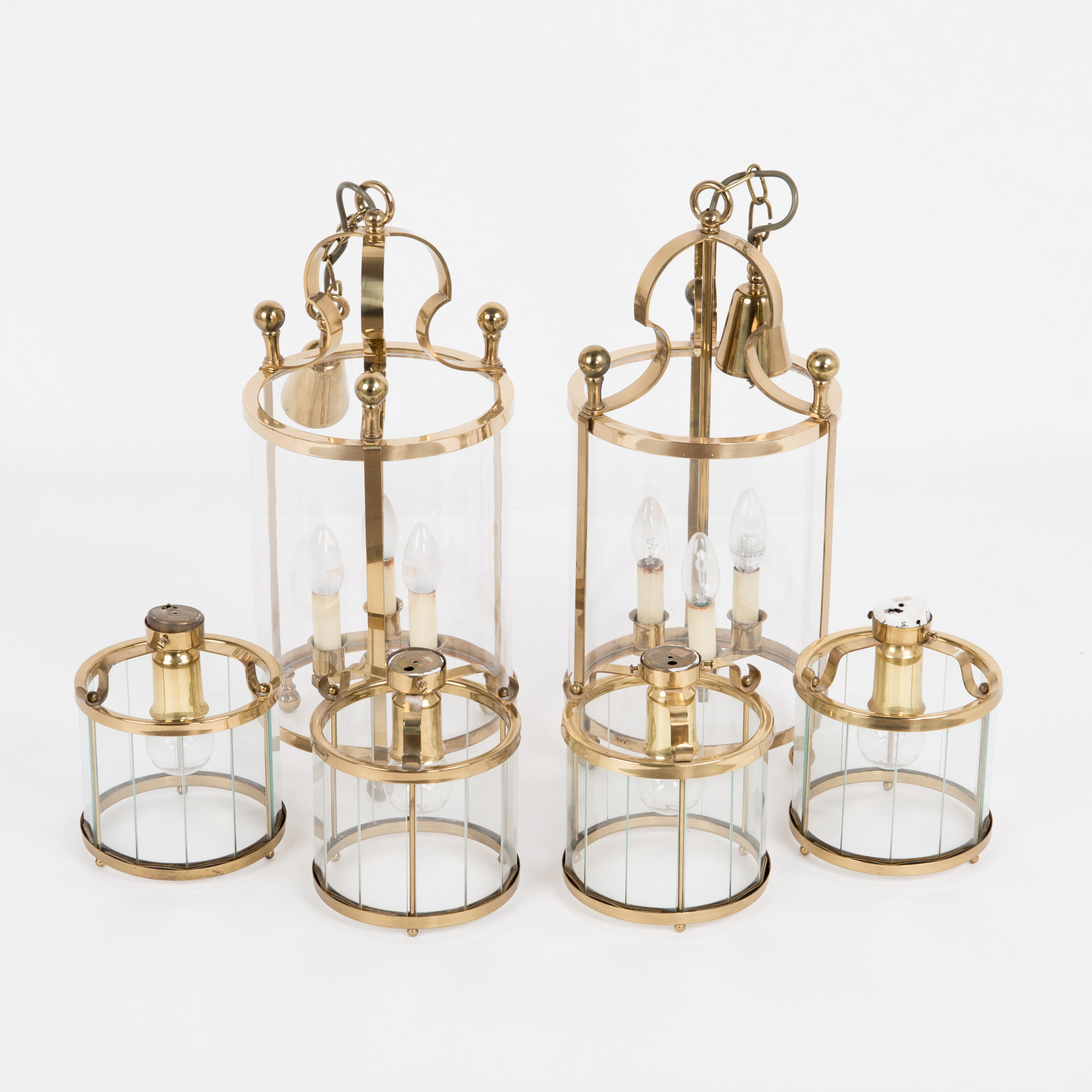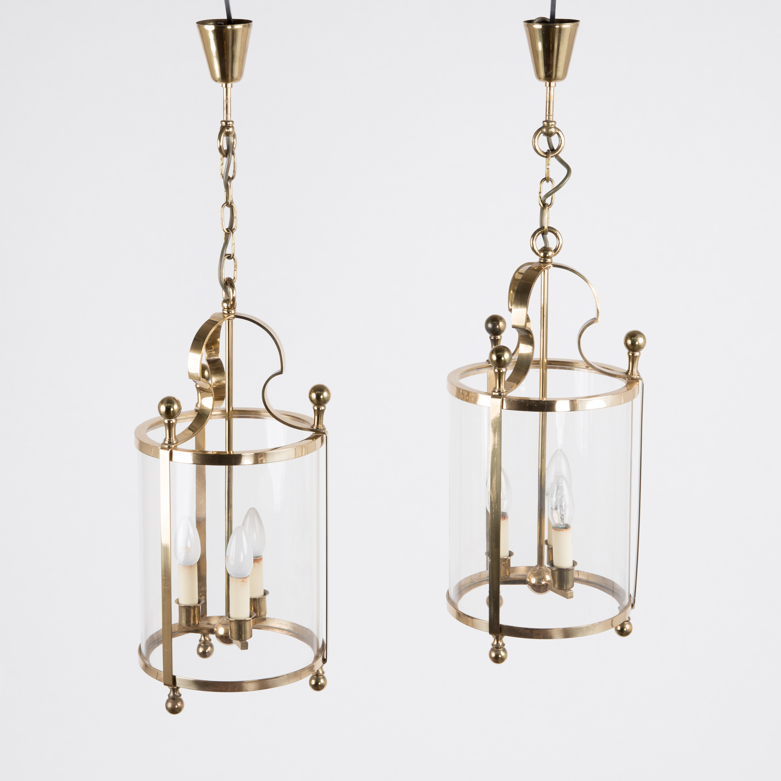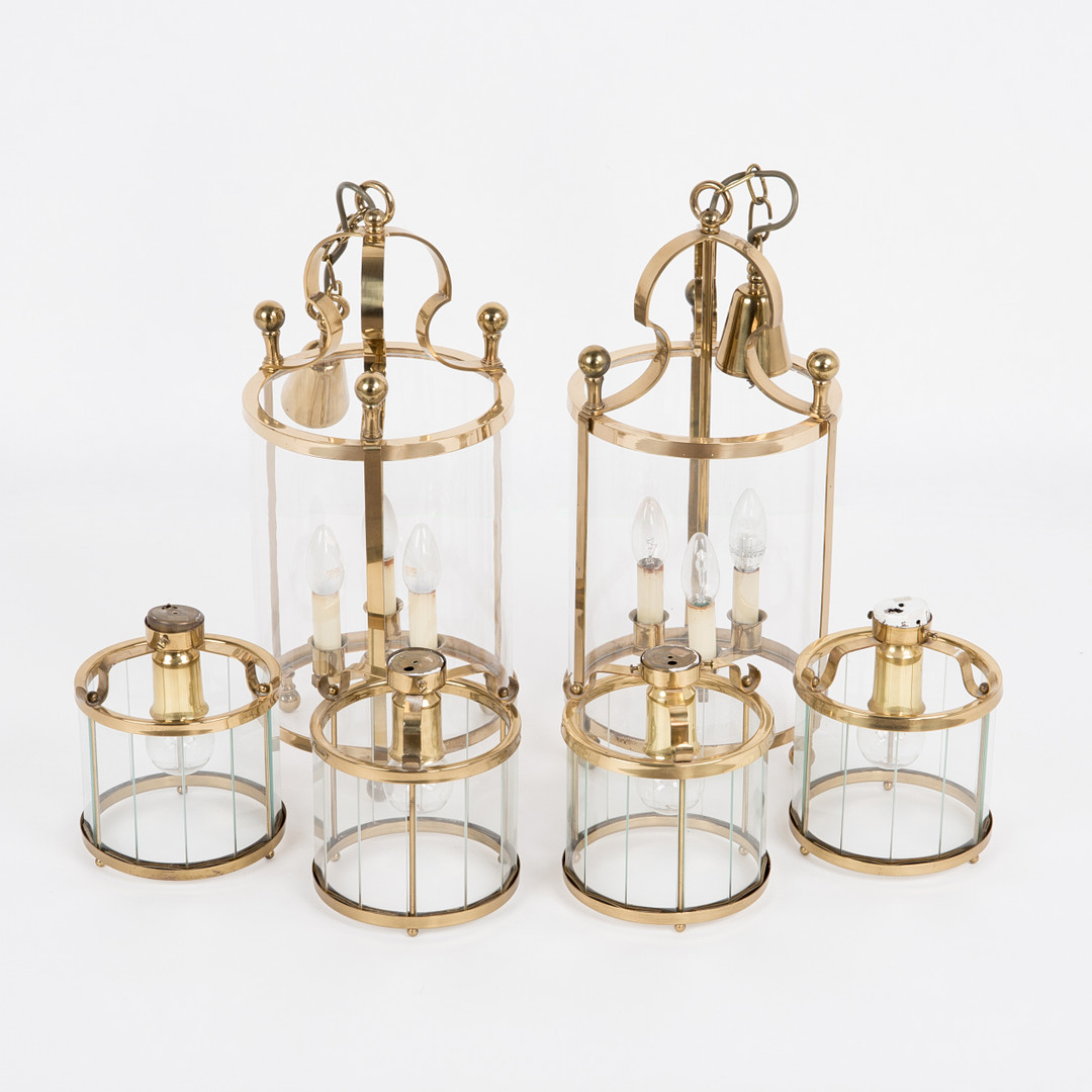 1875353. Sechs Deckenleuchten / Lampen, Messing, Glas (6).