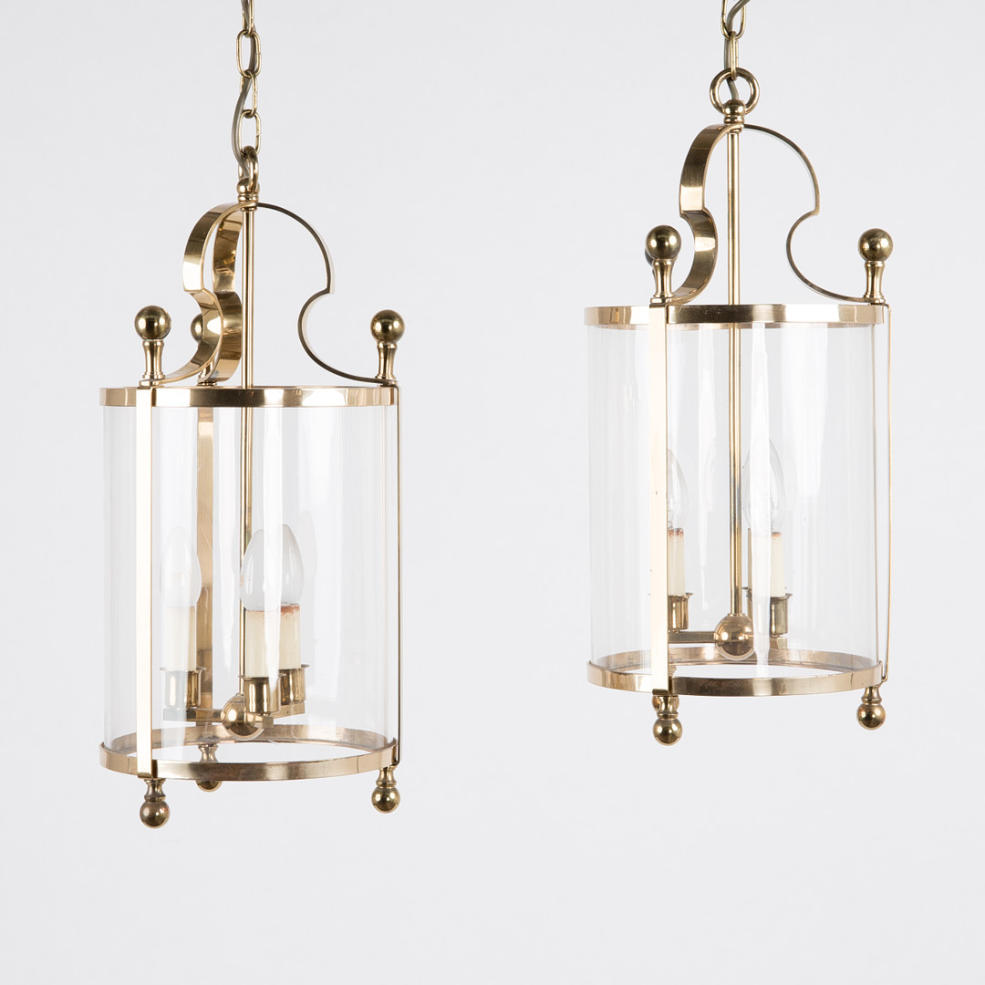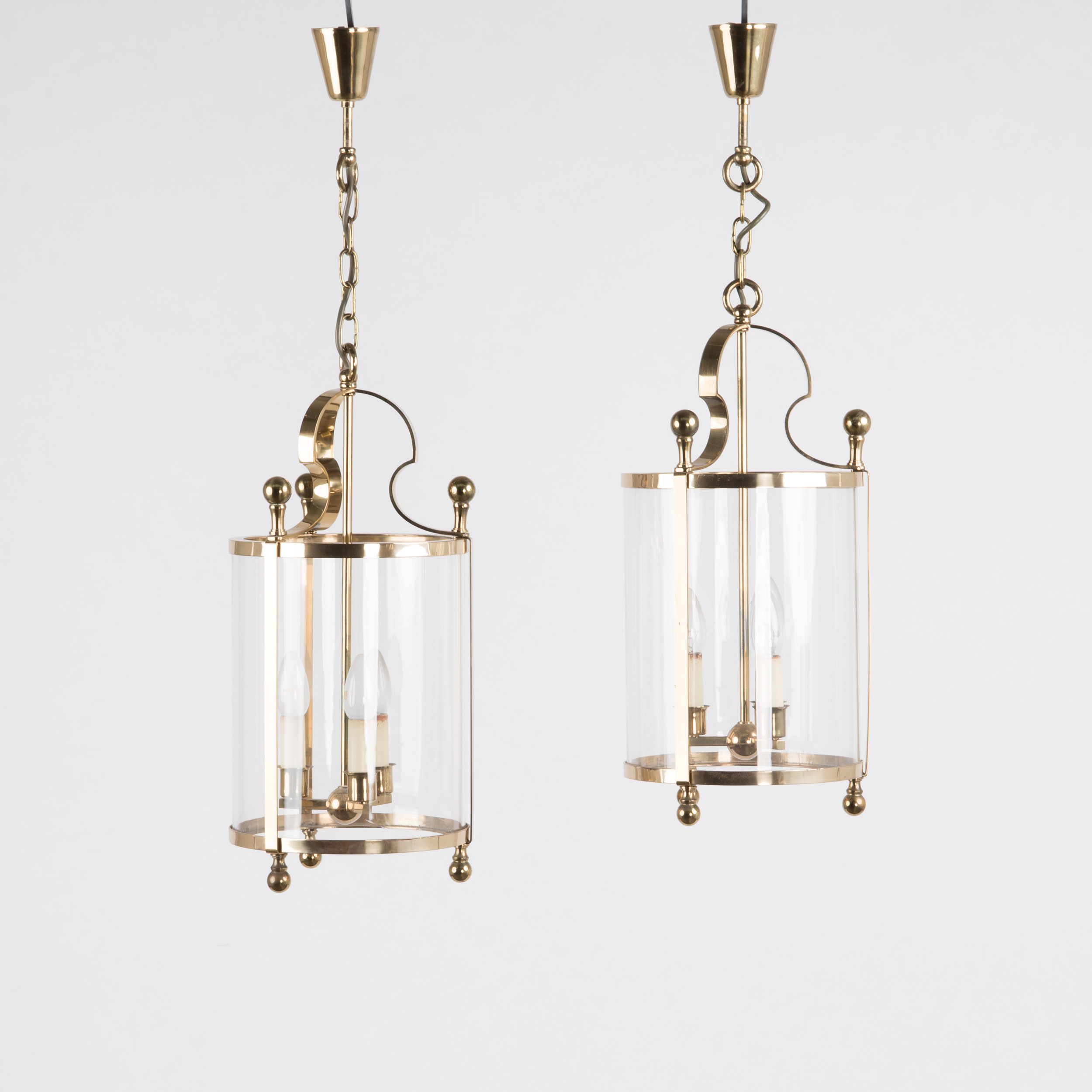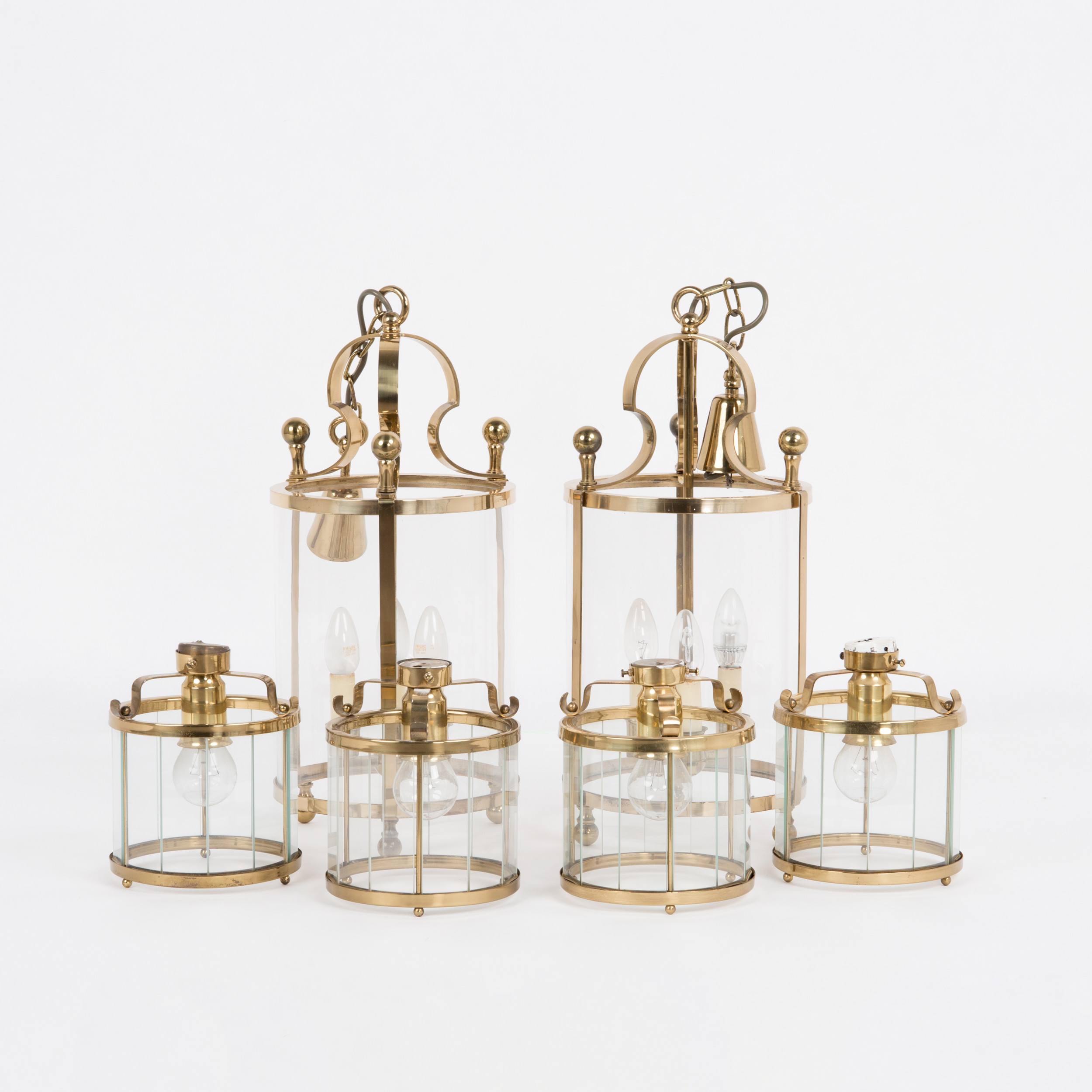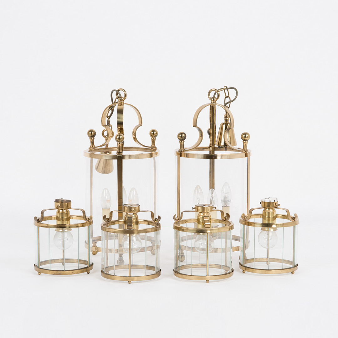 1875353. Sechs Deckenleuchten / Lampen, Messing, Glas (6).