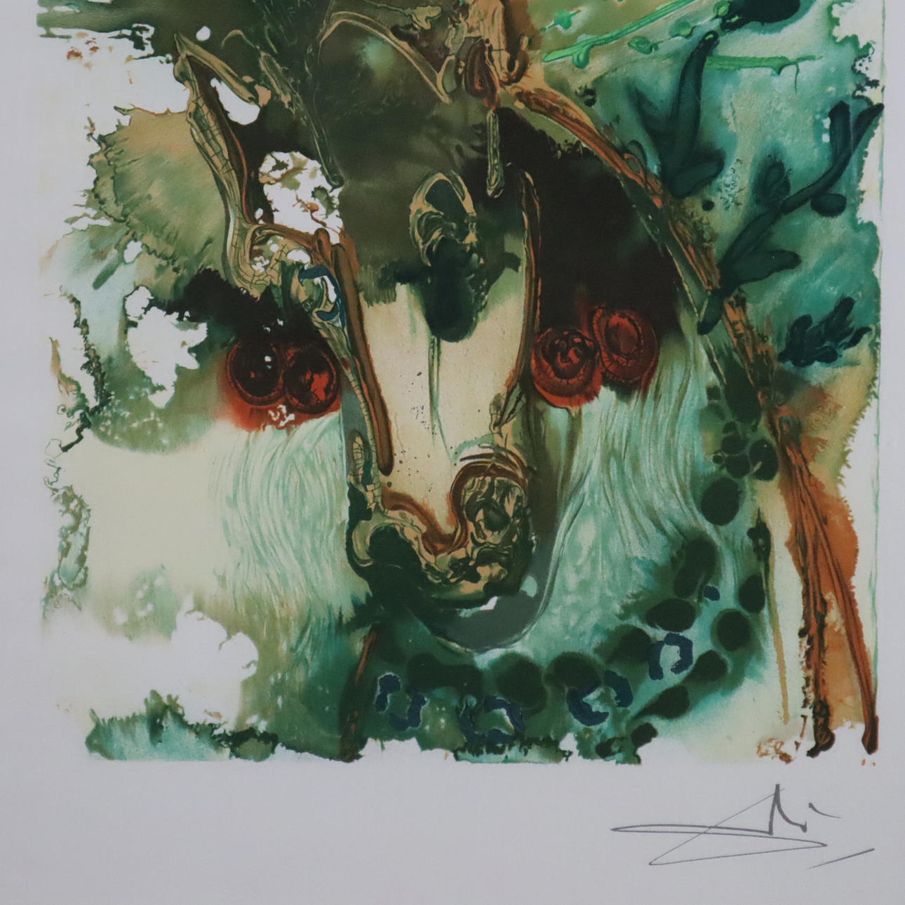 Dalí, Salvador (1904-Figueres-1989) - “Bucéphale”, Farblithografie auf Vélin d'Arches, aus der Serie "Les chevaux de Dalí", Stempelsignatur, Druck von Armand & Georges Israel, Paris 1983, Trockenstempel "Georges Israel Editeur", Copyright-Stempel "By S.P.A.D.E.M 1983", Darstellungsmaße ca.41,5x30cm, unter Plexiglas gerahmt, Gesamtmaße ca.59x39,5cm.