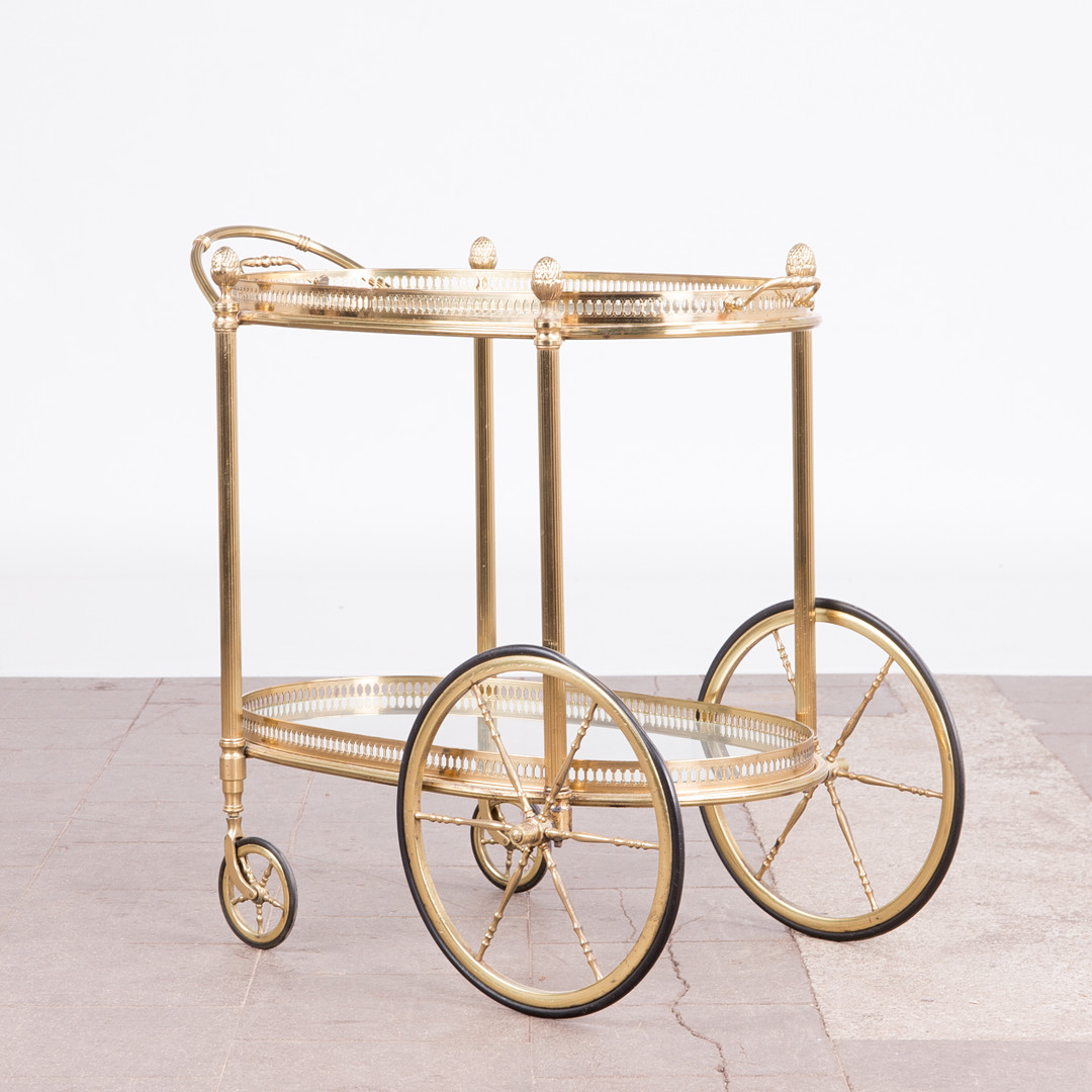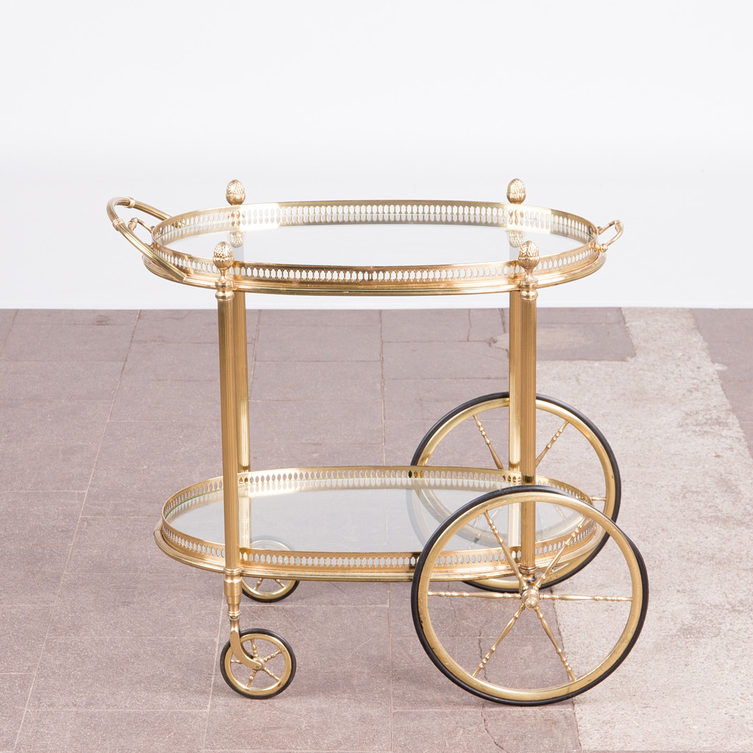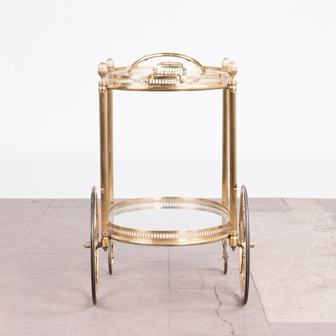 1883202. Barwagen / Servierwagen, Messing, Glas.