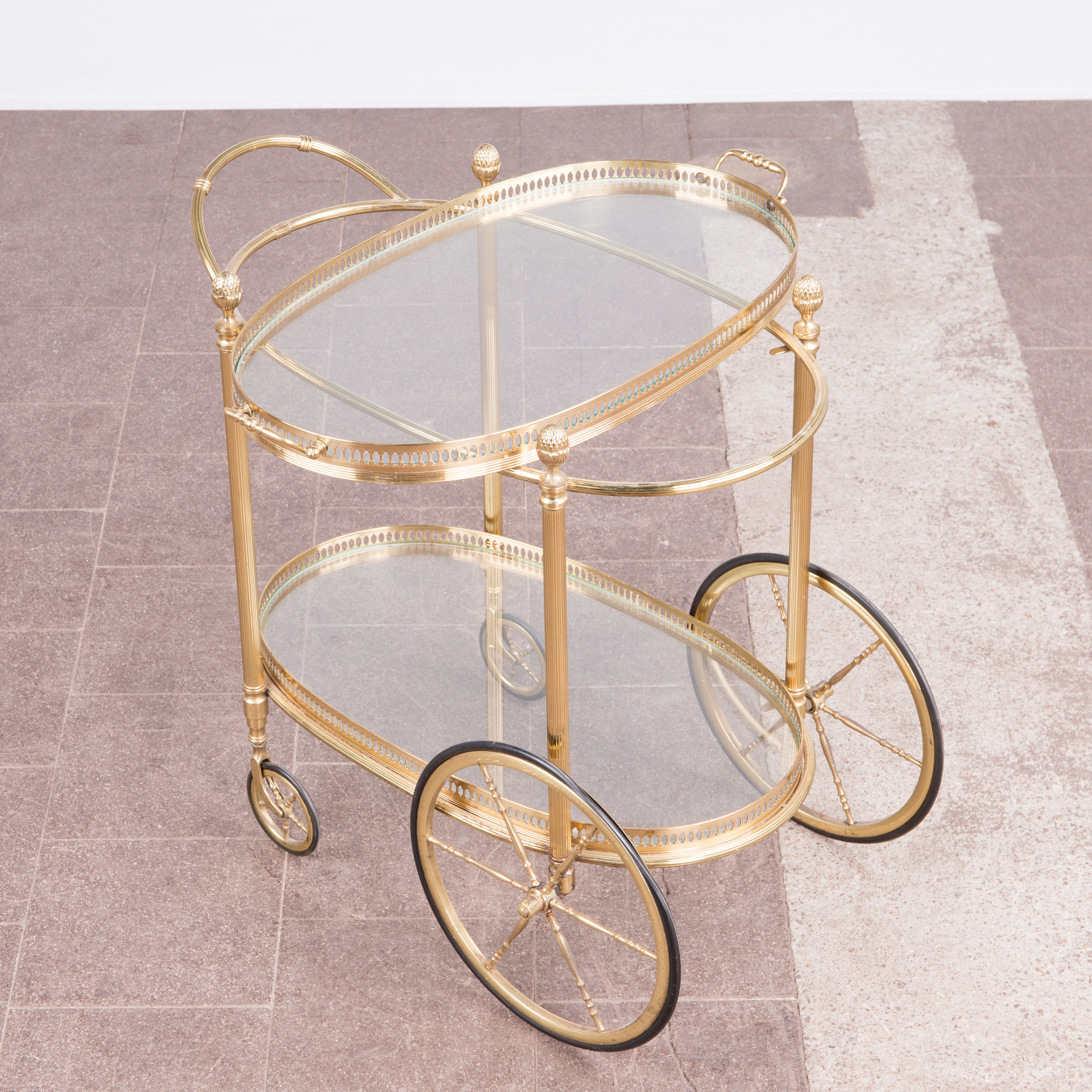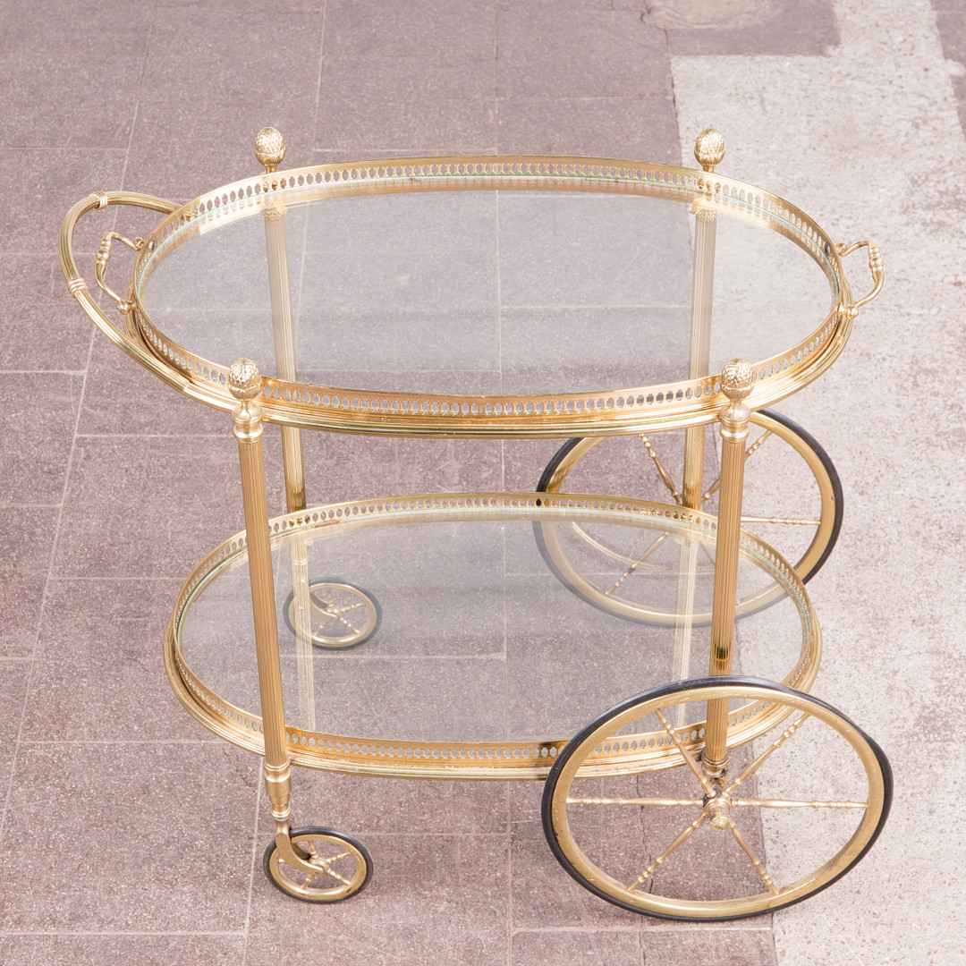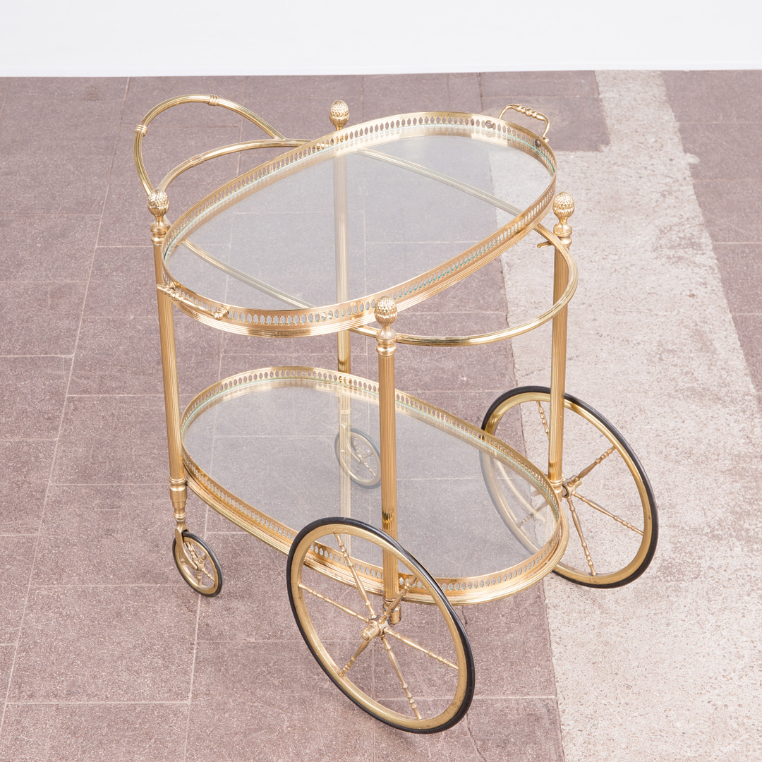 1883202. Barwagen / Servierwagen, Messing, Glas.