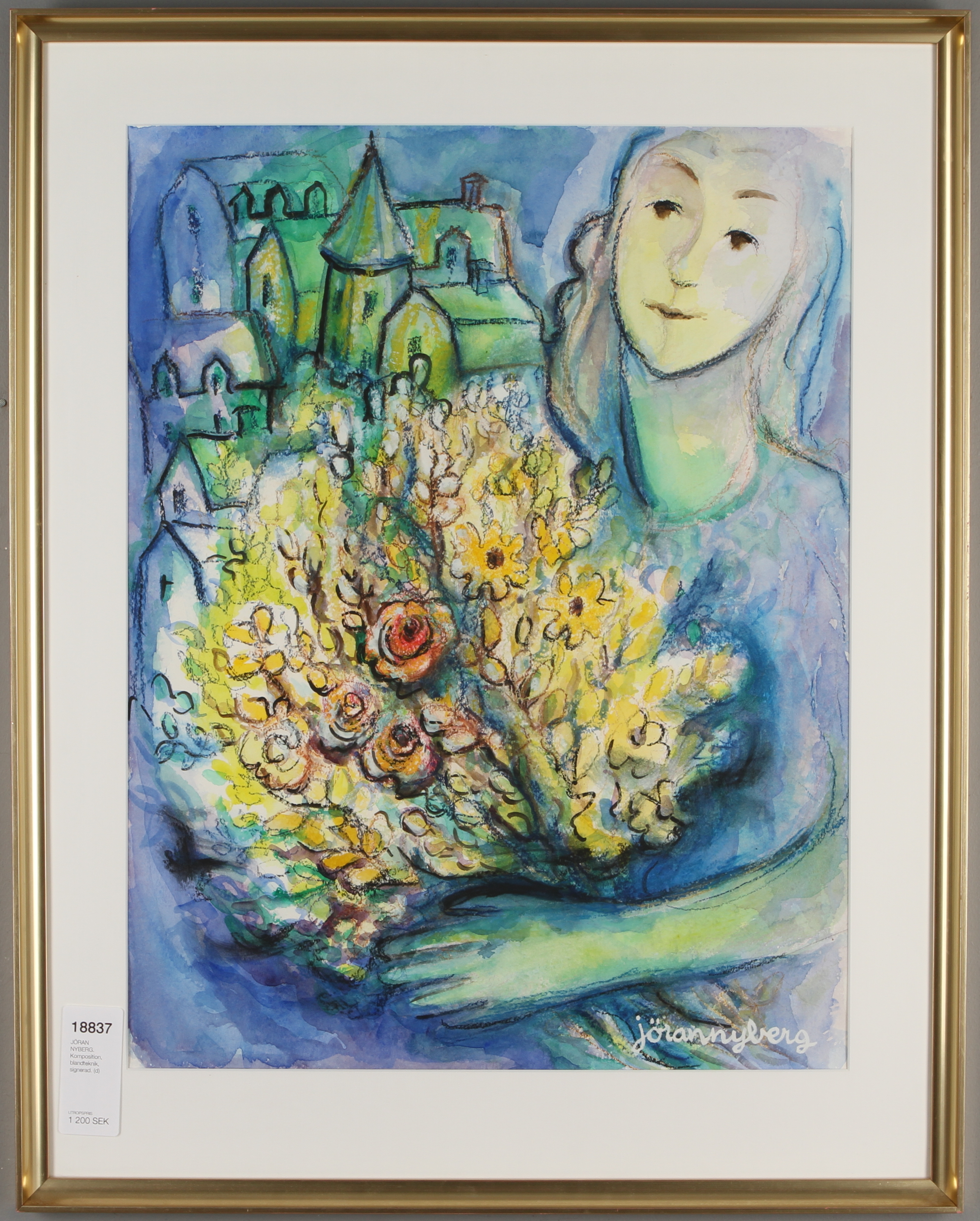 18837. JÖRAN NYBERG. Komposition, Mischtechnik, signiert.