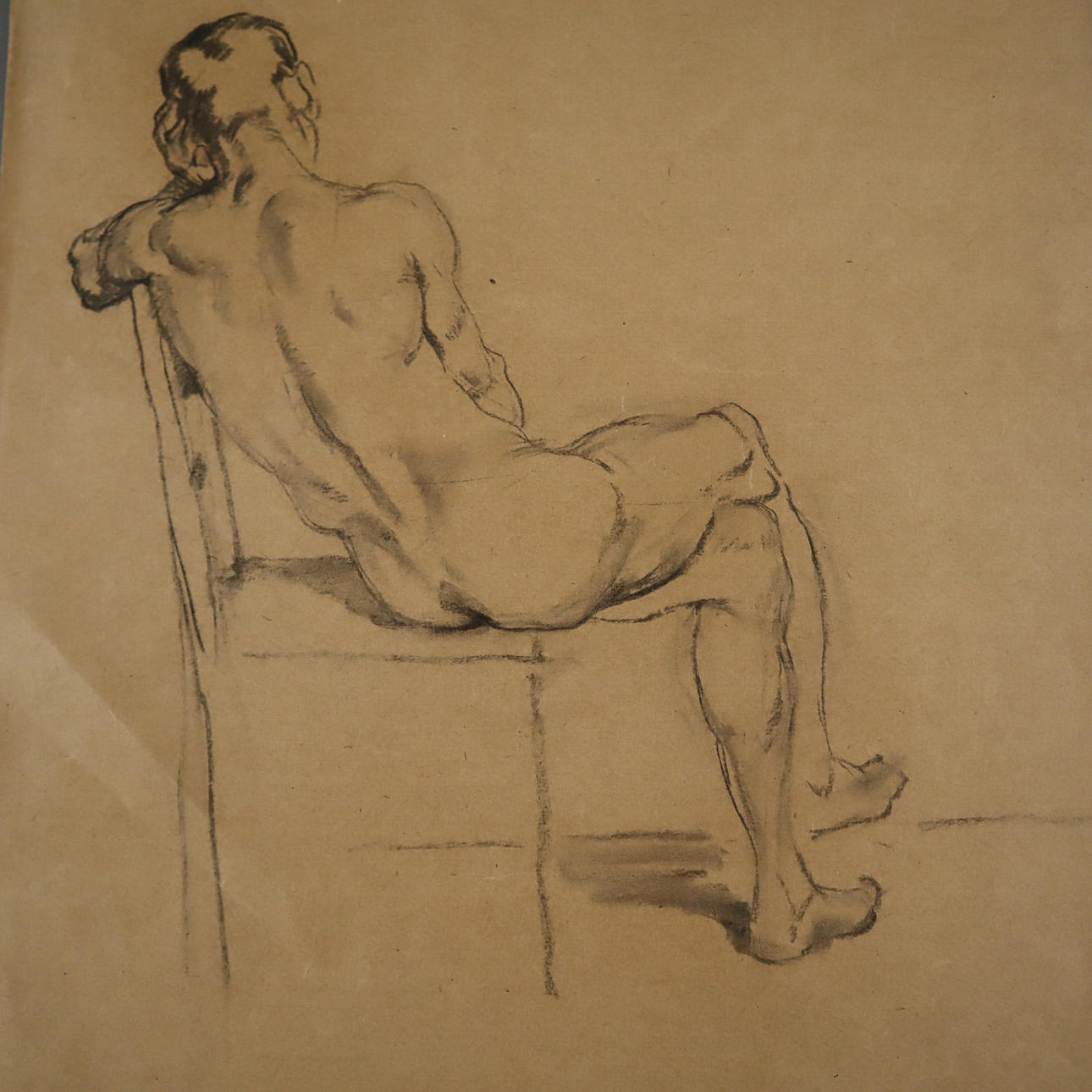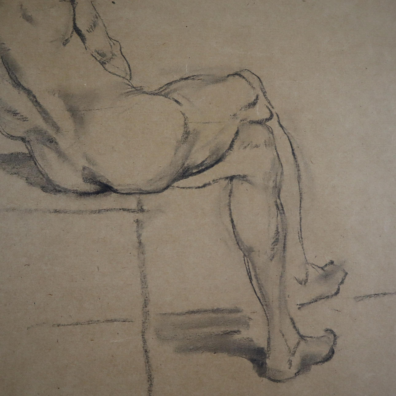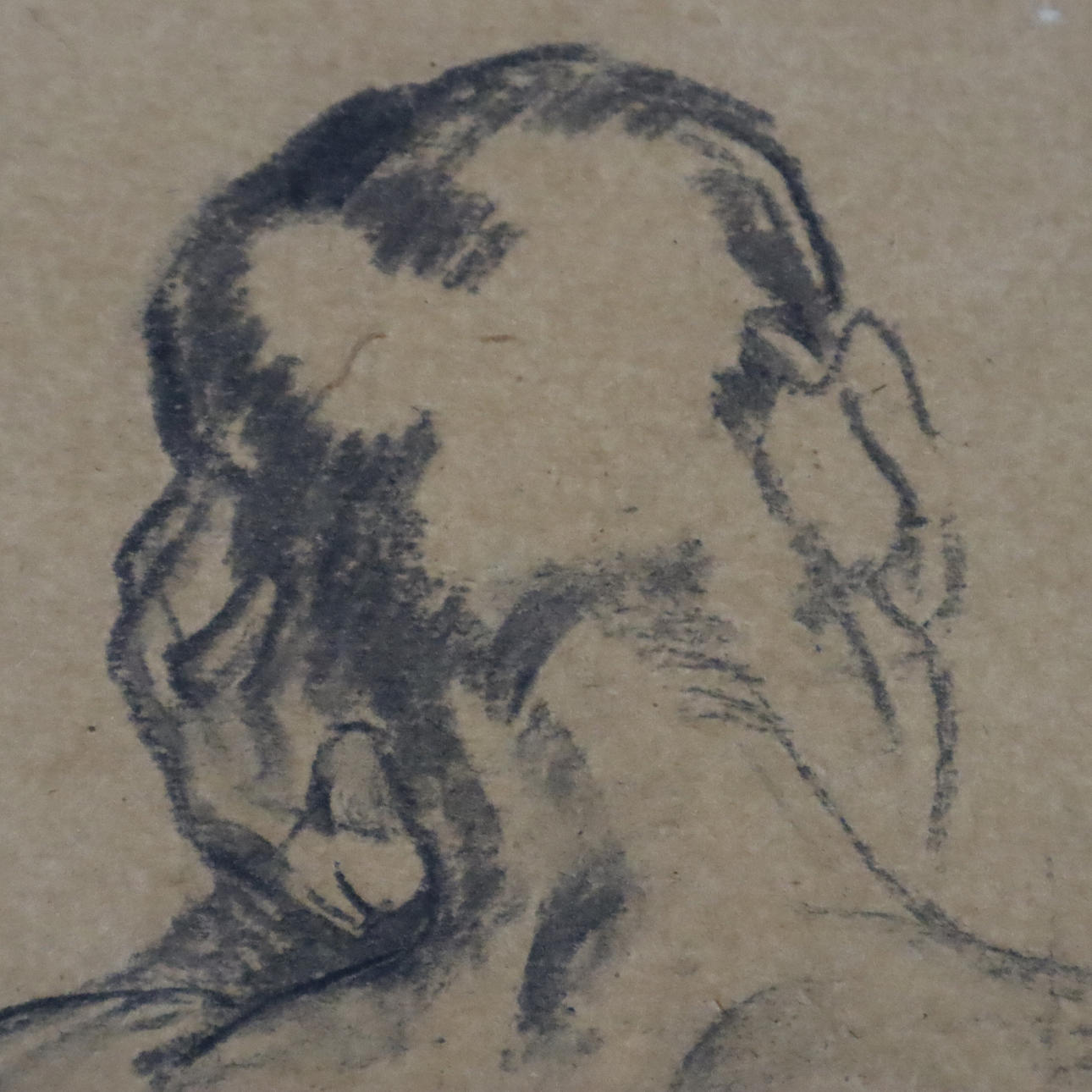 schwarze Kohle auf braunem Papier, unsigniert, unten rechts datiert Januar? 22, Blatt ca.51,5x41,5cm, Blatt liegt lose