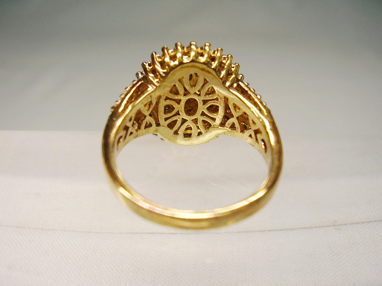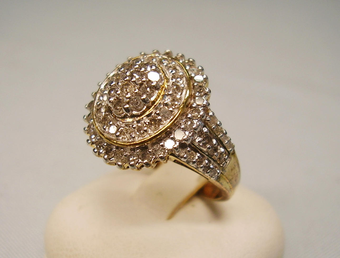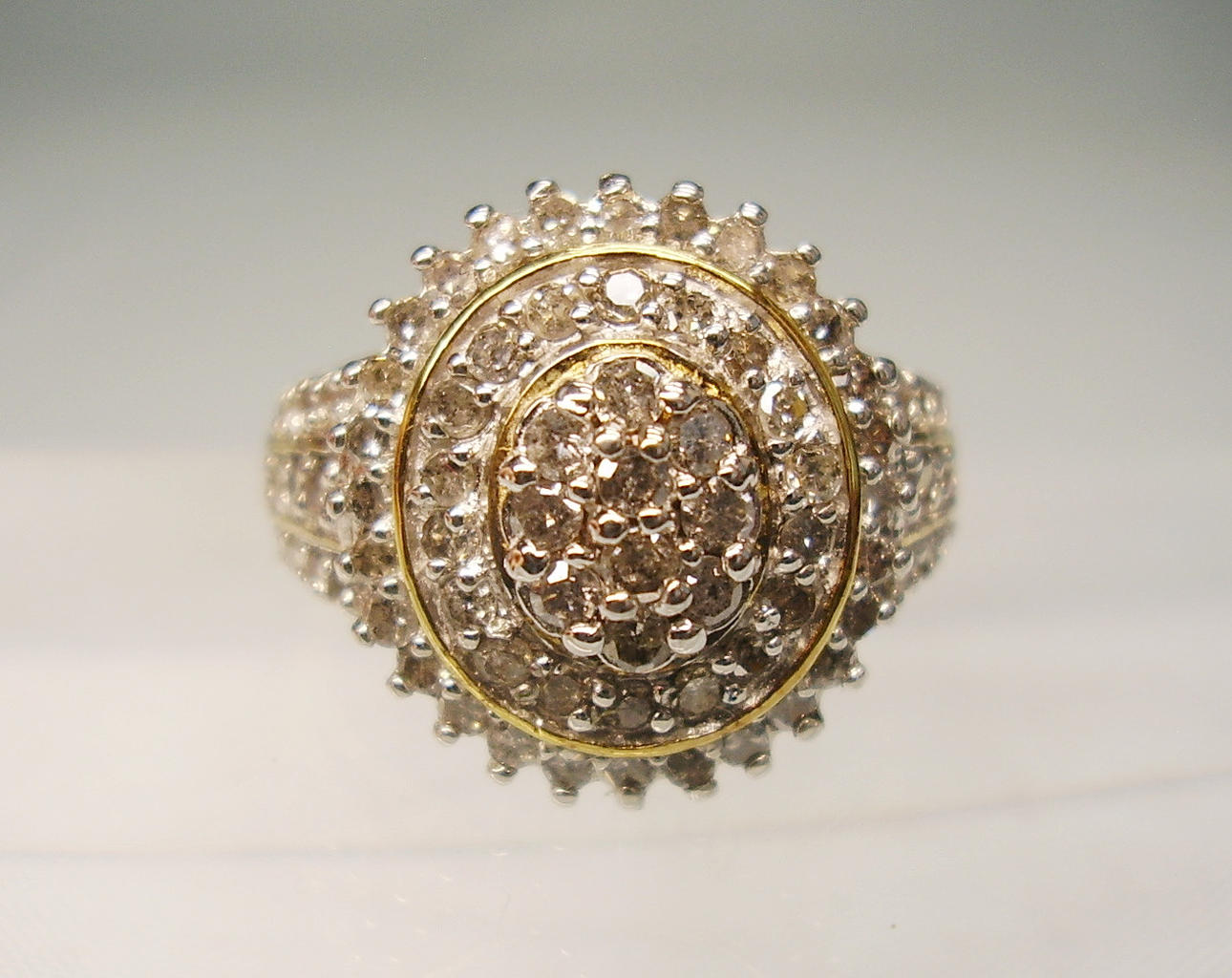 Die Ringschultern und der runde, 3-stufige Ringkopf sind komplett mit 78 rund facettierten Diamanten von ca. 1,5 ct besetzt.