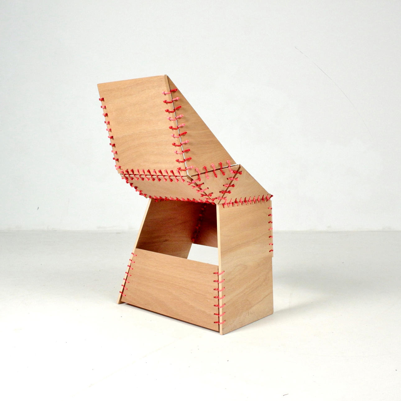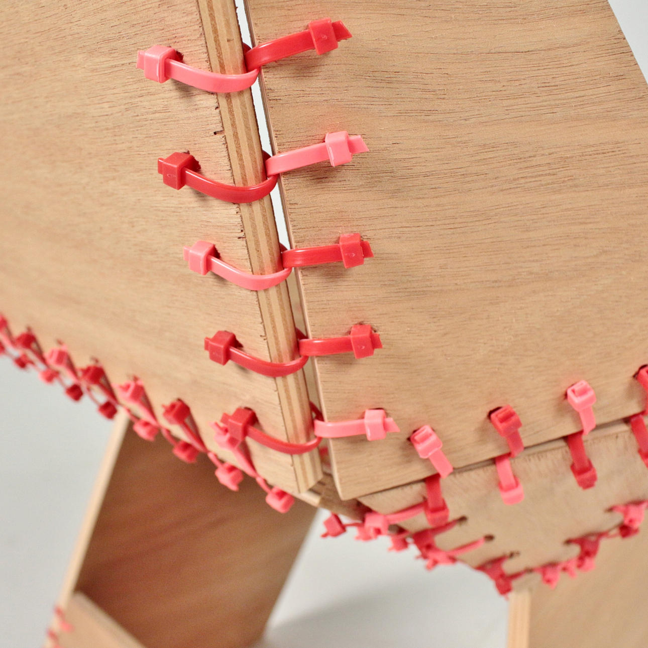 Stuhl Modell „Stitch“ - Vitra Workshop. Schichtholzplatten, farbige Kabelbinder.