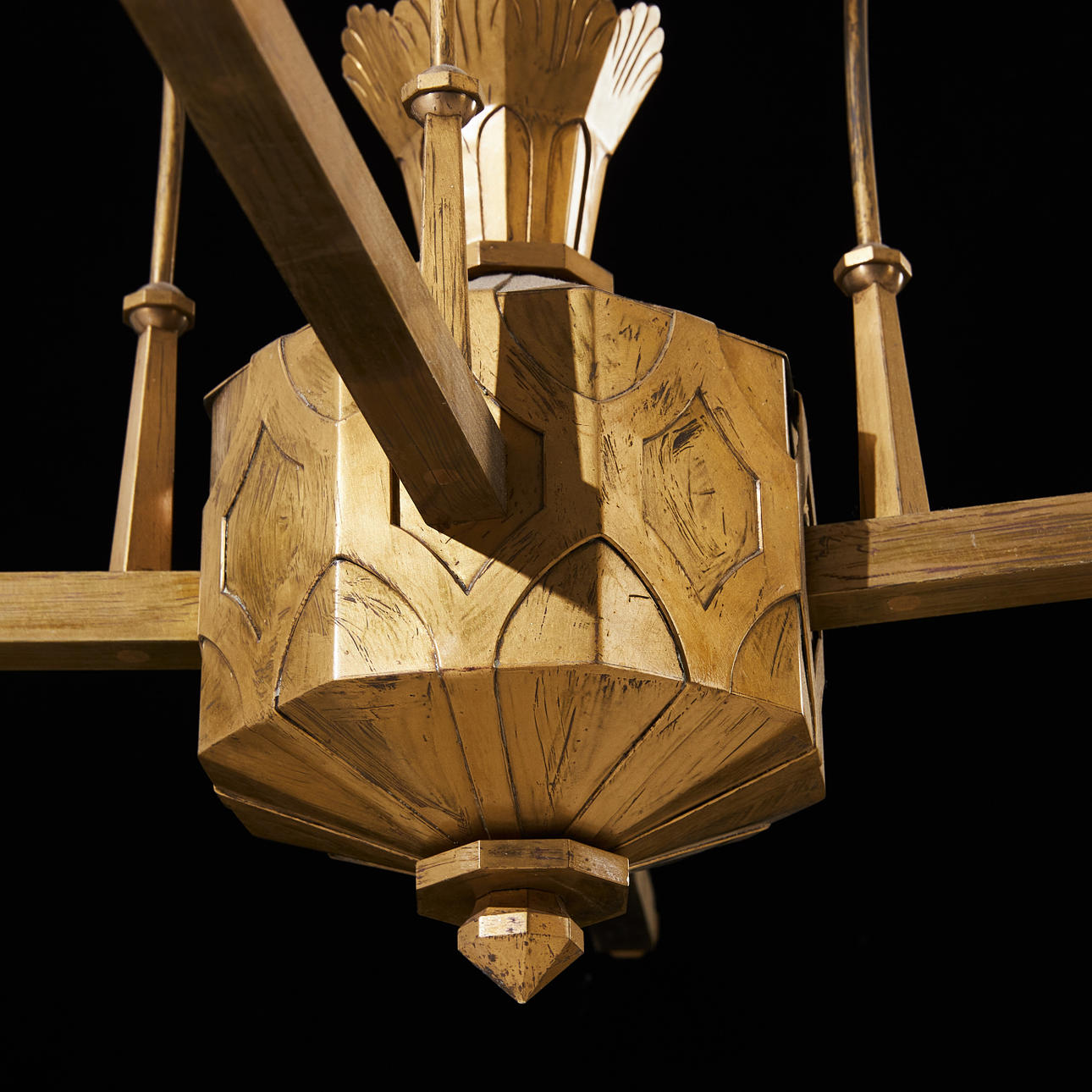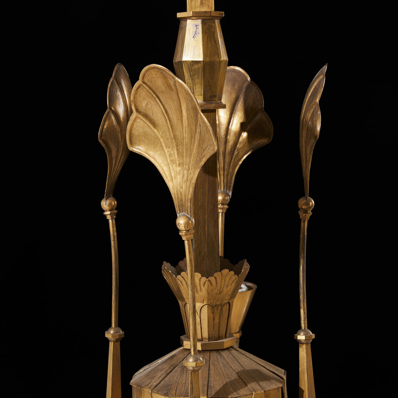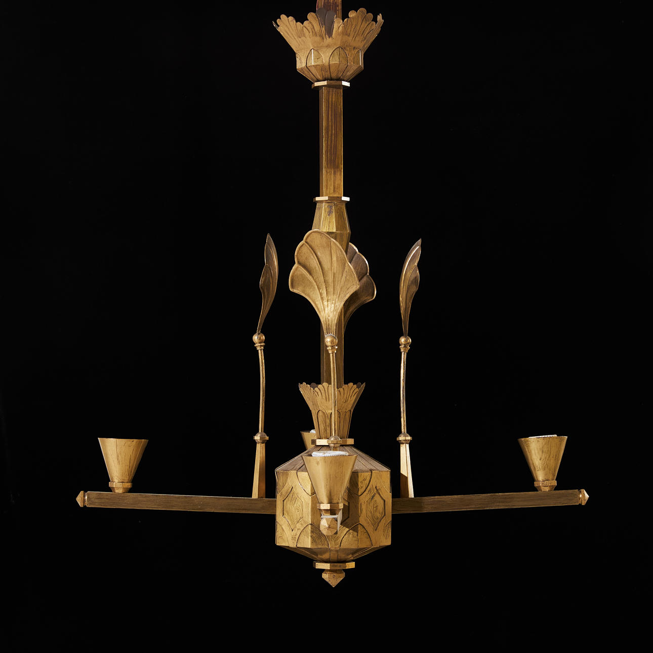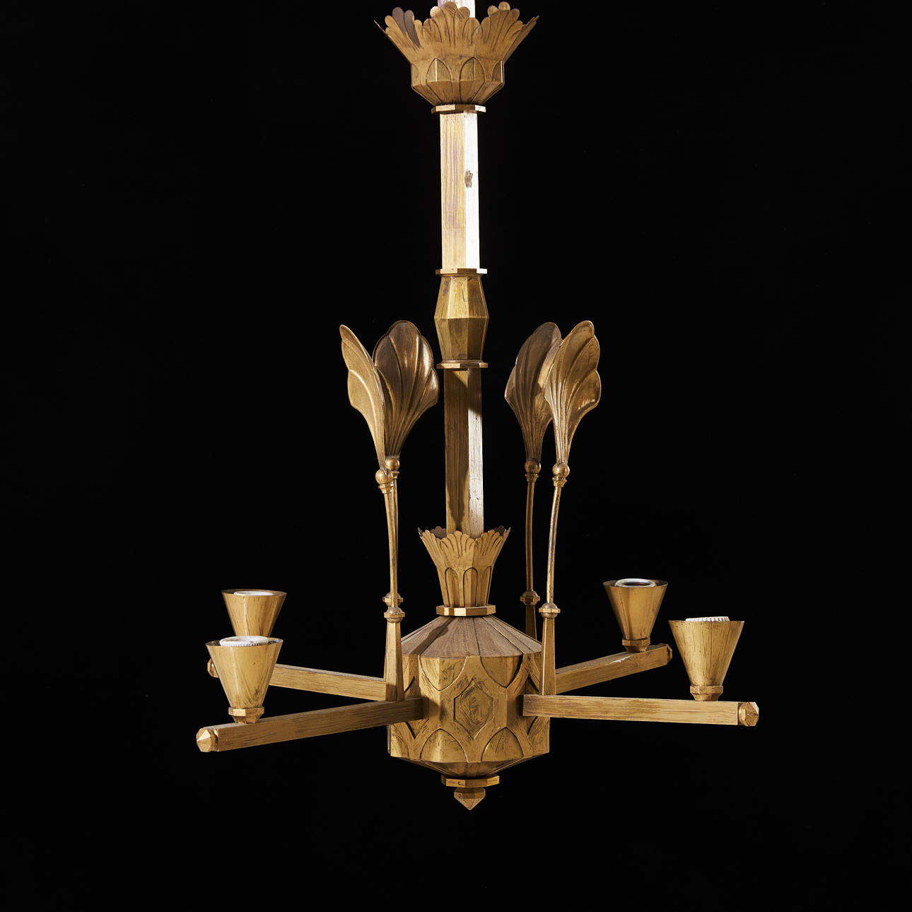 4 gerade Leuchtenarme, fächerförmige Reflektoren, Höhe ca. 80, Durchmesser 65 cm.