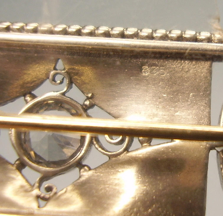 Die Jugendstil-Brosche ist im Stil der Wiener Werkstätten / Josef Hofmann gearbeitet.