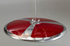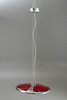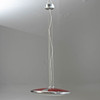 Höhenverstellbar. Satiniertes Aluminium, Opalglas und PC-Glas in rot. Ø 40 cm.