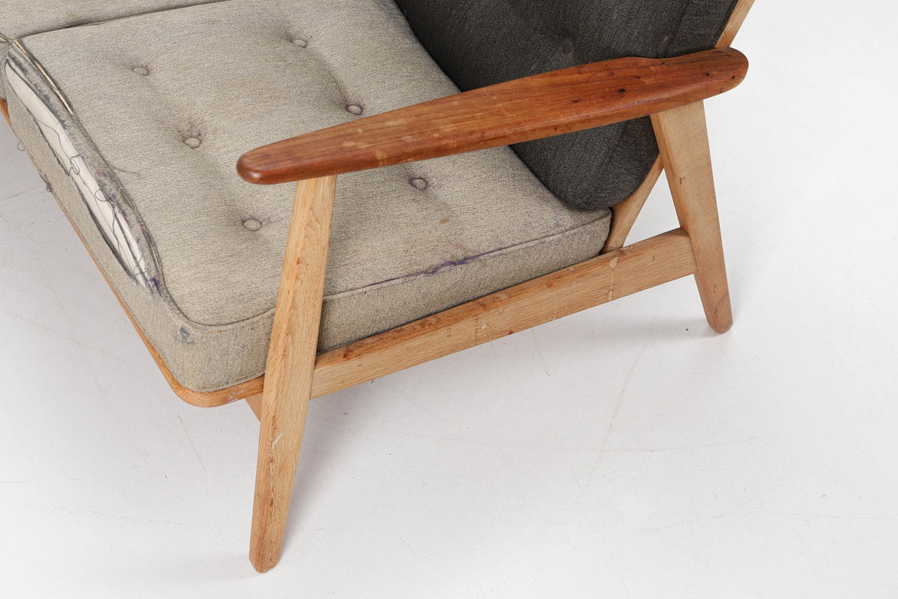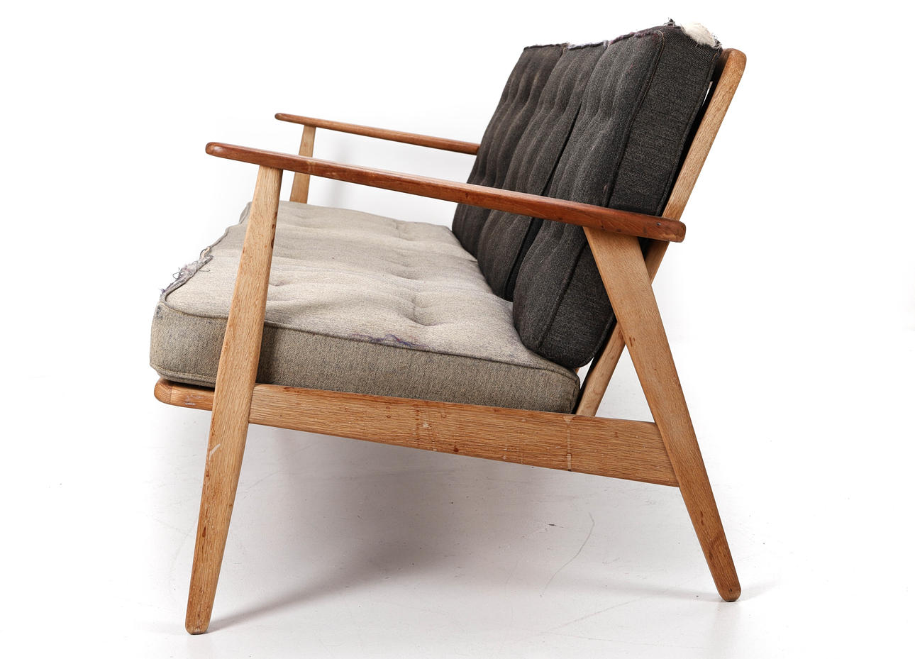 Flecken, Verschleiß, verblasste, manchmal zerrissene Polster.