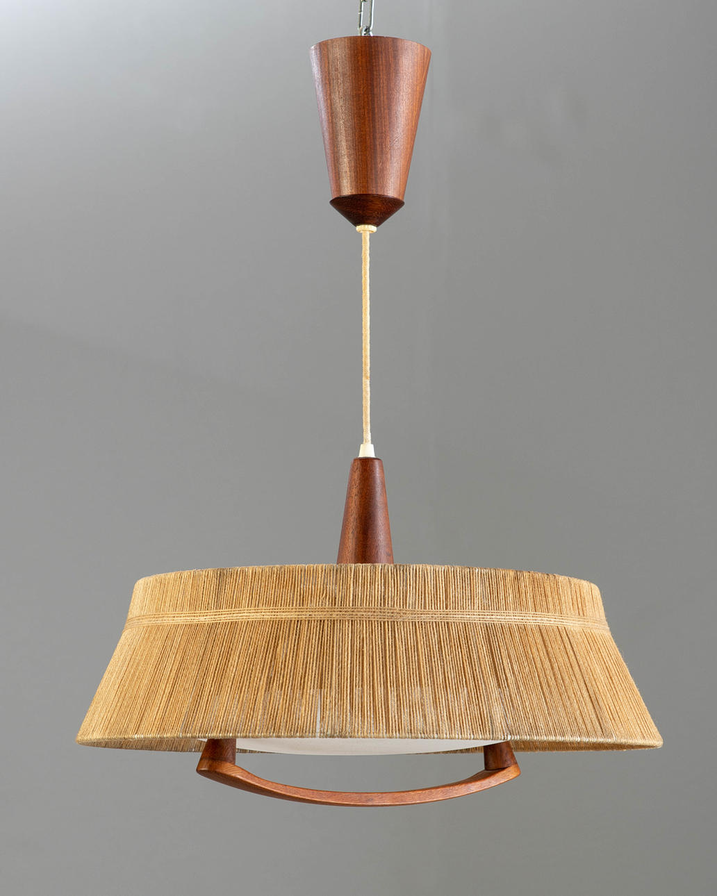1899675. Temde, Zug-Pendellampe, Teak und Sisal.